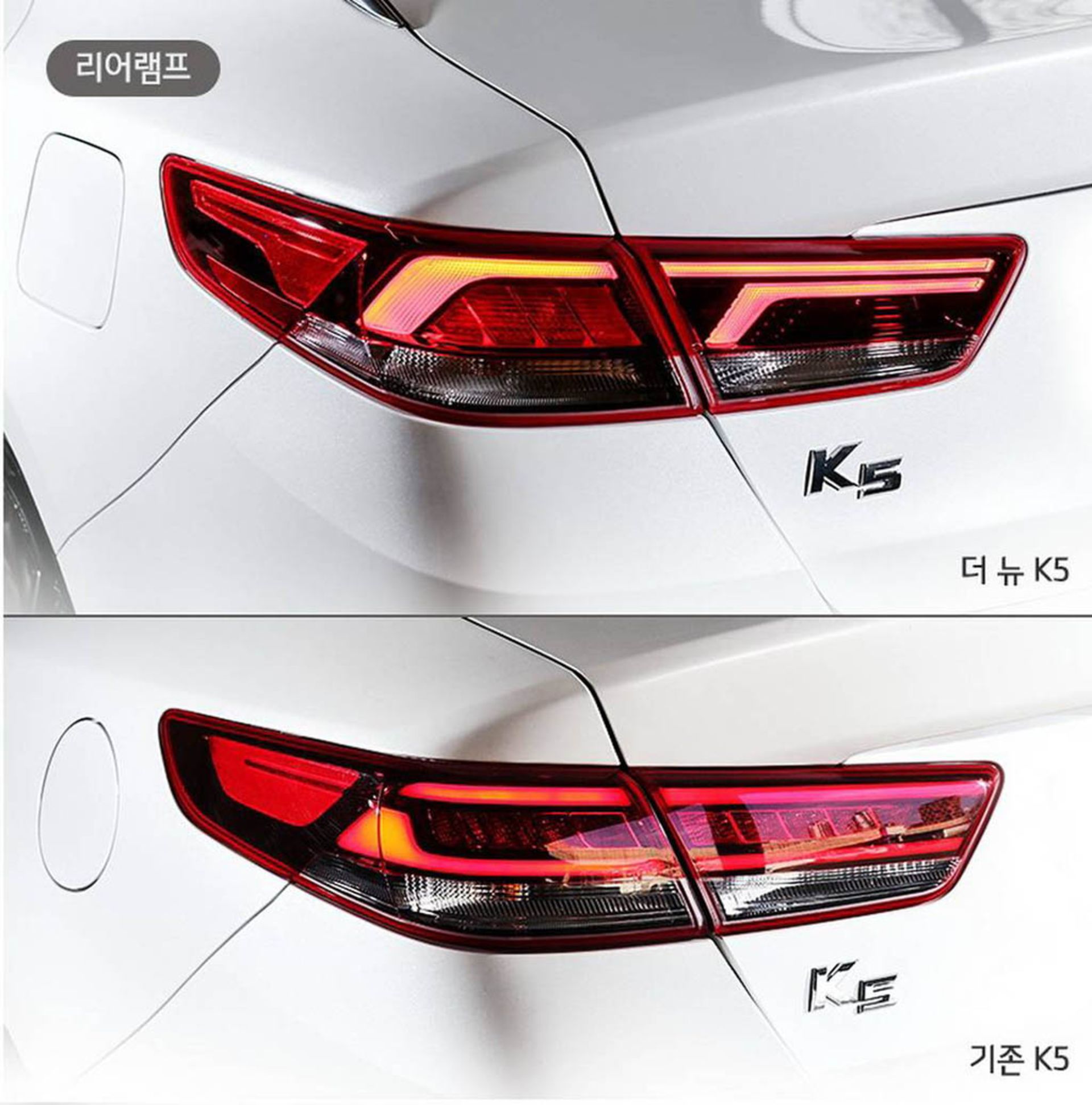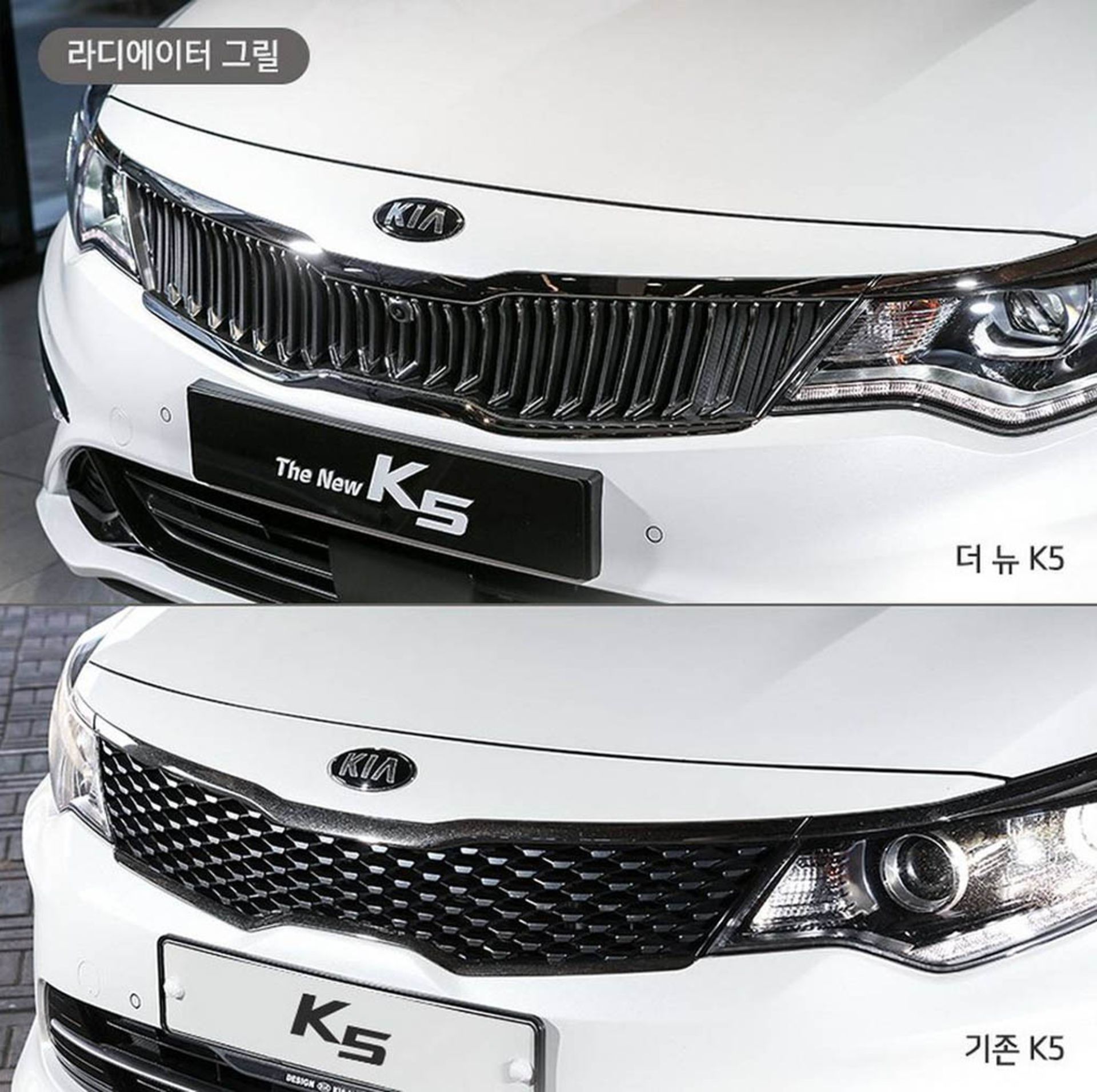 شاید در نگاه اول تغییرات صورت گرفته را نتوان چشمگیر نامید اما با نگاهی عمیق‌تر می‌توانیم اصلاحات ظاهری K5 را تشخیص دهیم. در بخش جلو شاهد میله‌های عمودی جدید جلوپنجره هستیم و این قطعه را دو چراغ به‌روز شده با واحدهای روز روشن بسط یافته احاطه کرده‌اند. همچنین داخل چراغ‌ها نیز بازنگری‌هایی صورت گرفته است.