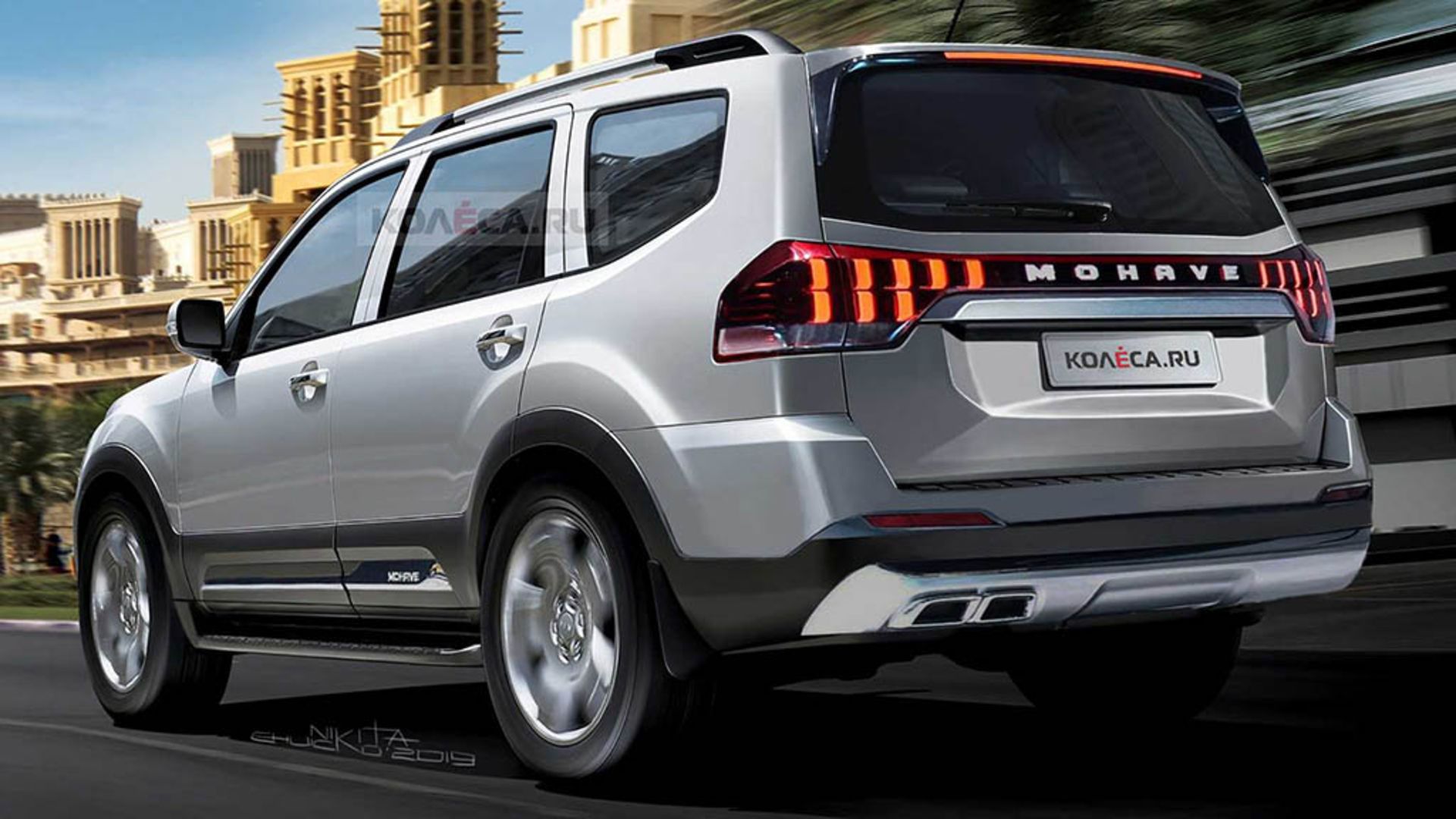 تأثیر گذاشتن طراحی تلوراید روی کانسپت مسترپیس و رندر موهاوی در این تصاویر واضح است. جلوپنجرهی بزرگ و برجستهی رندر منتشر شده نمای جلو را در اختیار گرفته و مه شکنها نیز از شاسیبلند جدید کیا گرفته شدهاند. شیشهی عقب و خط کمر خودرو نیز مشابه تلوراید است. البته در بخش عقب داستان فرق میکند. این رندر در بخش عقب وامدار کانسپت مسترپیس بوده و چراغهای بزرگ و نشان موهاوی را در خود جای داده است.
