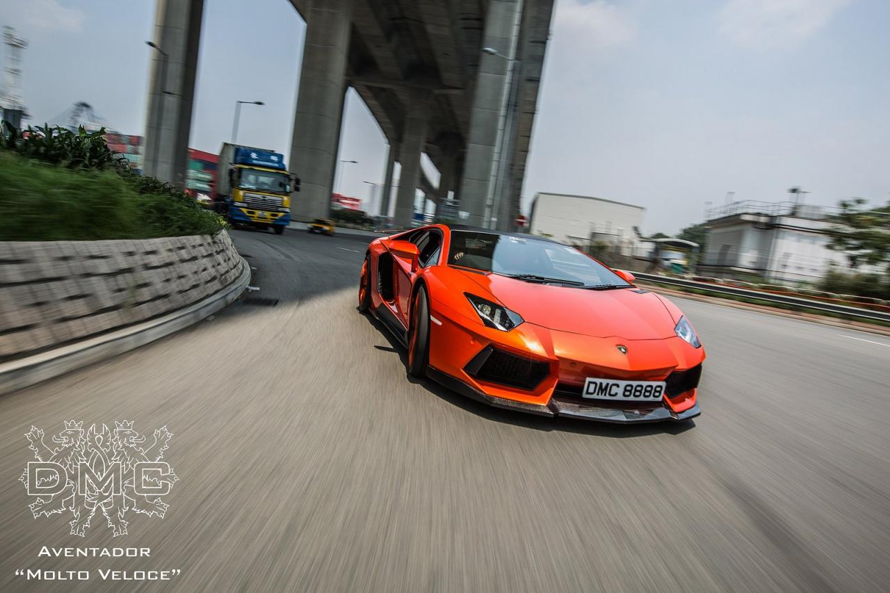 Molto Veloce نامی است که DMC برای این خودرو درنظر گرفته و یکی از معانی آن در زبان ایتالیایی «فوق العاده سریع» است. کیت بدنه در جلو شامل یک اسپویلر فیبرکربنی است که زیر سپر استاندارد آونتادور نصب شده، همچنین رکاب های جانبی فیبرکربنی نیز علاوه بر بهبود جریان هوای عبوری موجب افزایش نیروی چسبندگی آونتادور شده اند. دیفیوزر و اسپویلر عقب نیز آخرین تغییر صورت گرفته در آن است.