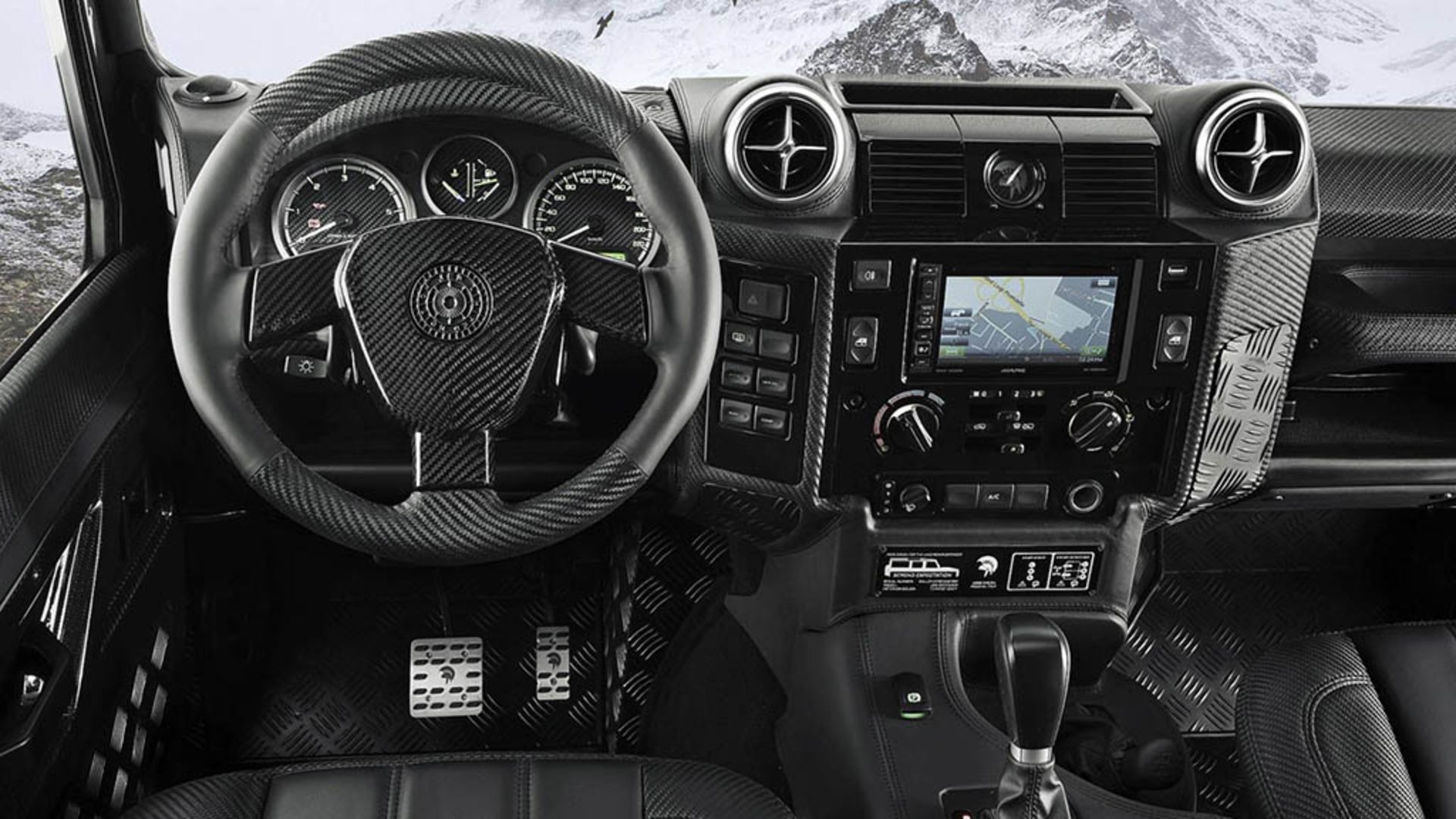 شاید این دیفندر خودرویی کاربردی باشد اما تیم Ares تلاش کرده برخی شاخصههای لوکس را نیز در کابین رعایت کند که شامل صندلیهای سفارشی چرمی دستدوز و عناصر فیبر کربنی در سراسر فضای داخلی میباشد. ترمزدستی نیز جای خود را به دکمه الکترونیکی داده تا فضای بین صندلیهای جلو آزاد شود.