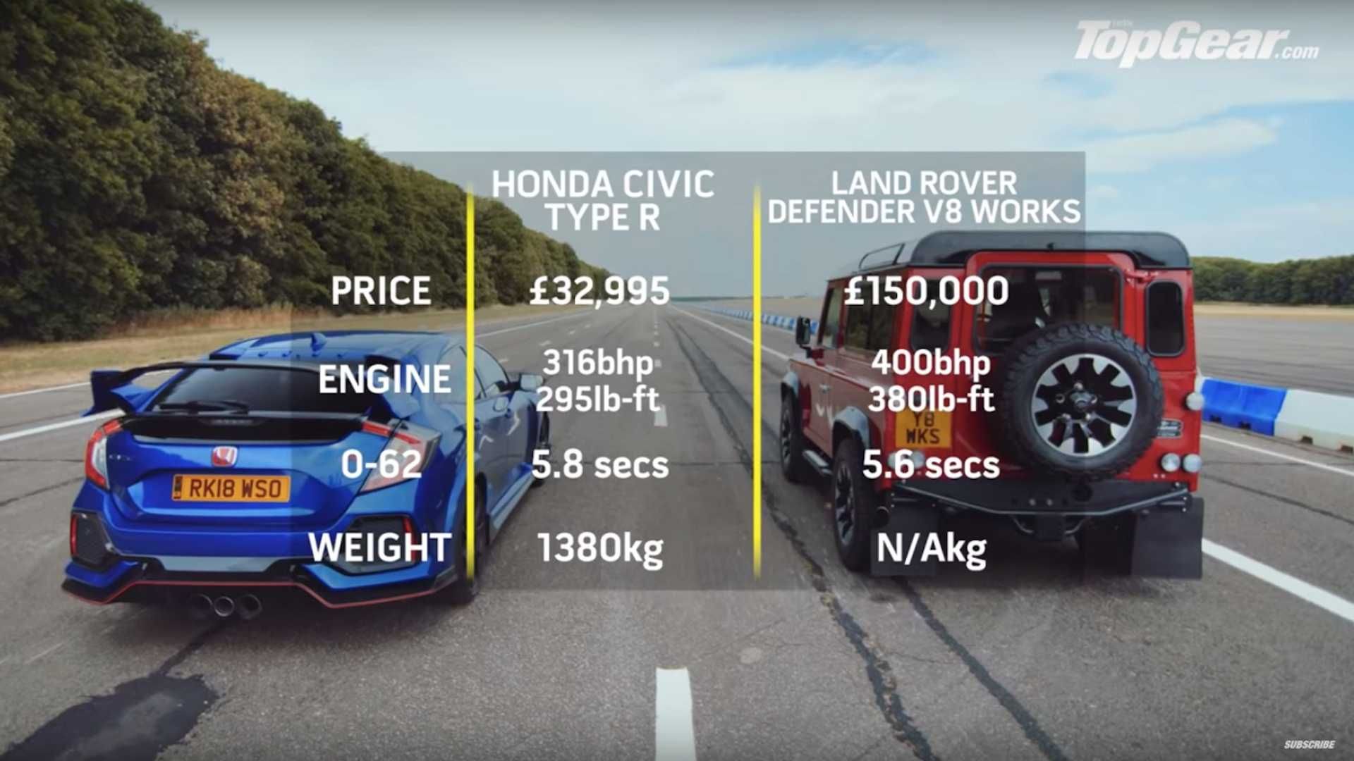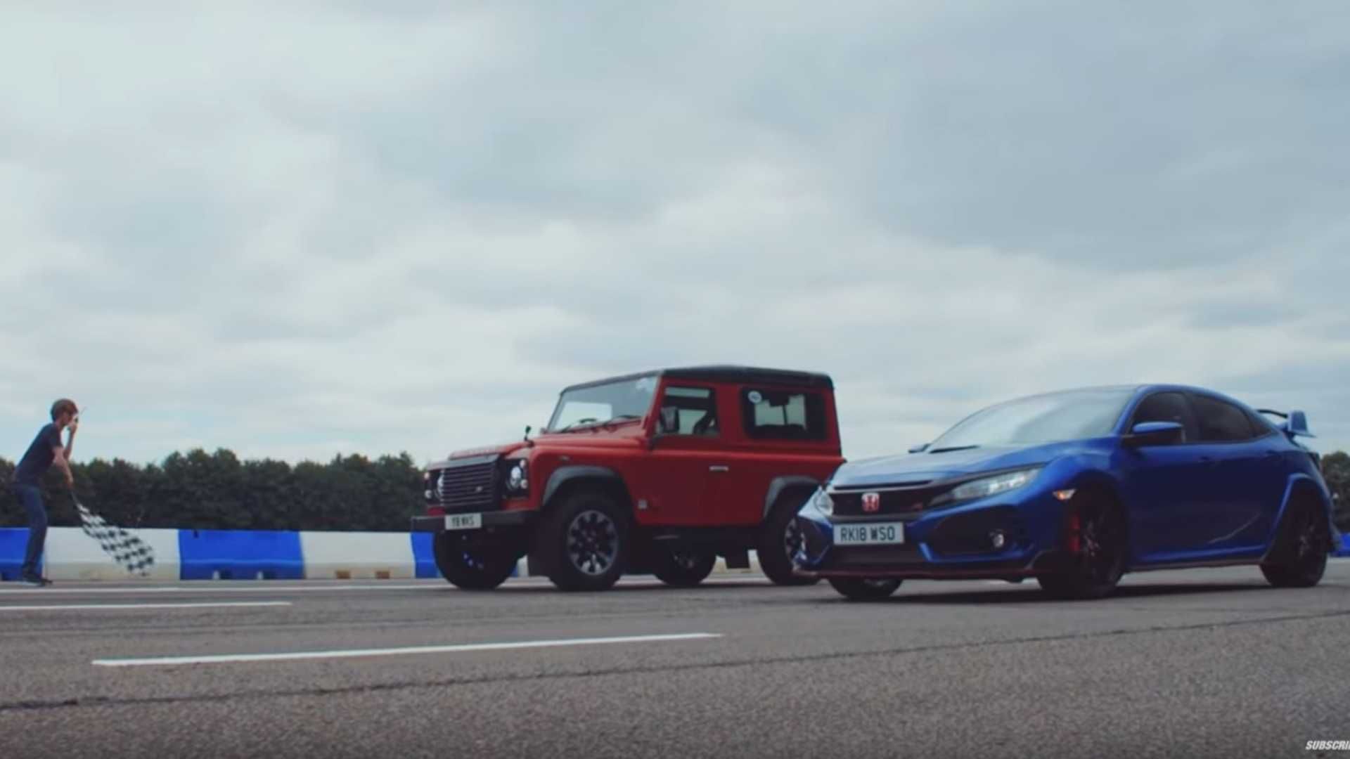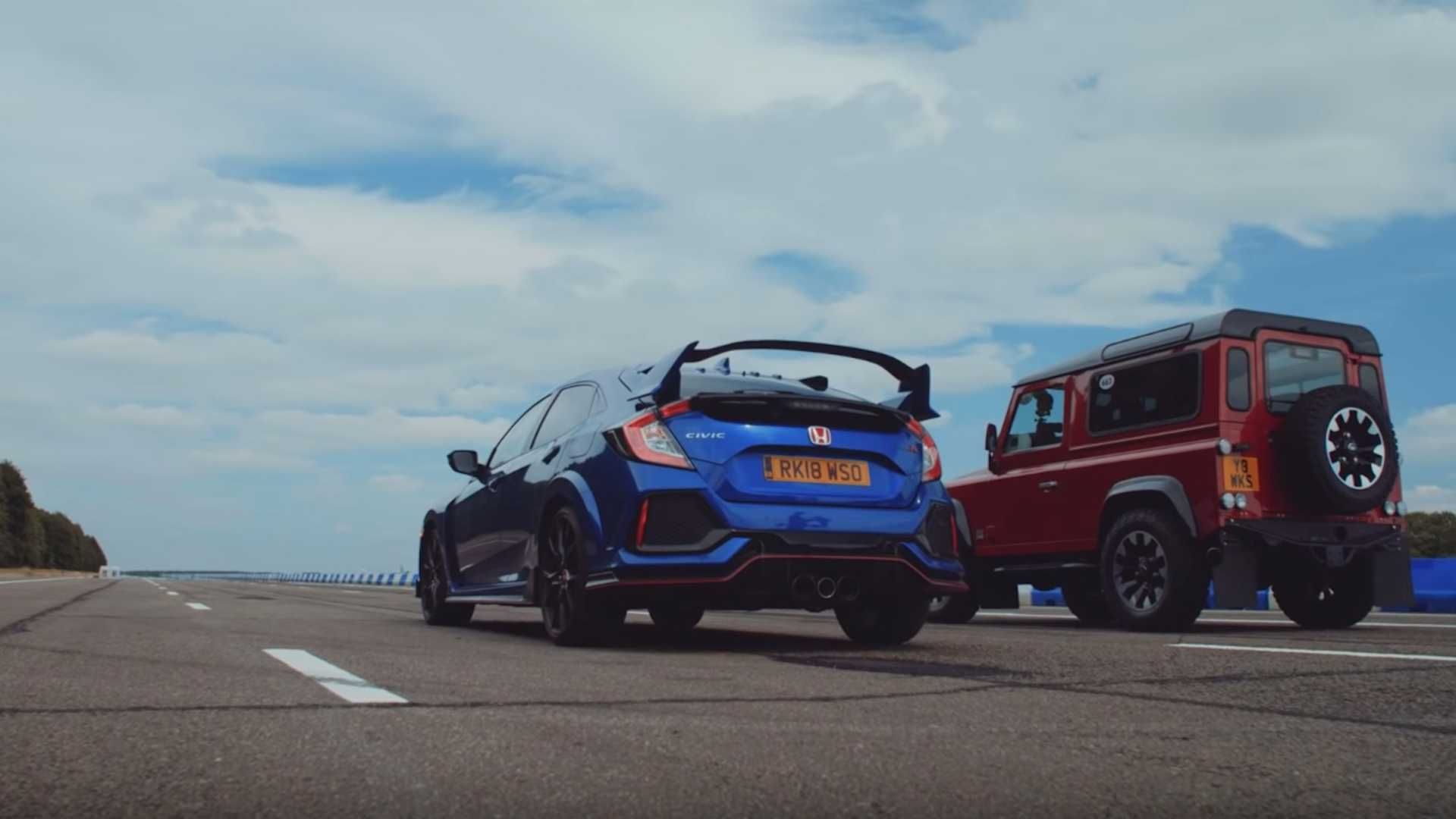 البته این بار شاهد درگ دو نمونه از متفاوتترین خودروها هستیم. یک دستگاه هوندا سیویک تایپ R آبیرنگ در برابر لندروور قرار گرفته است. منظور ما رنجروور ولار و یا رنجروور اووک و یا حتی رنجروور اسپورت SVR نیست! هاچبک داغ ژاپنیها باید با یک دیفندر 70 ساله مسابقه دهد! بله درست است. قدیمیترین محصول لندروور در برابر یکی از جذابترین هاچبکهای بازار قرار گرفته است.