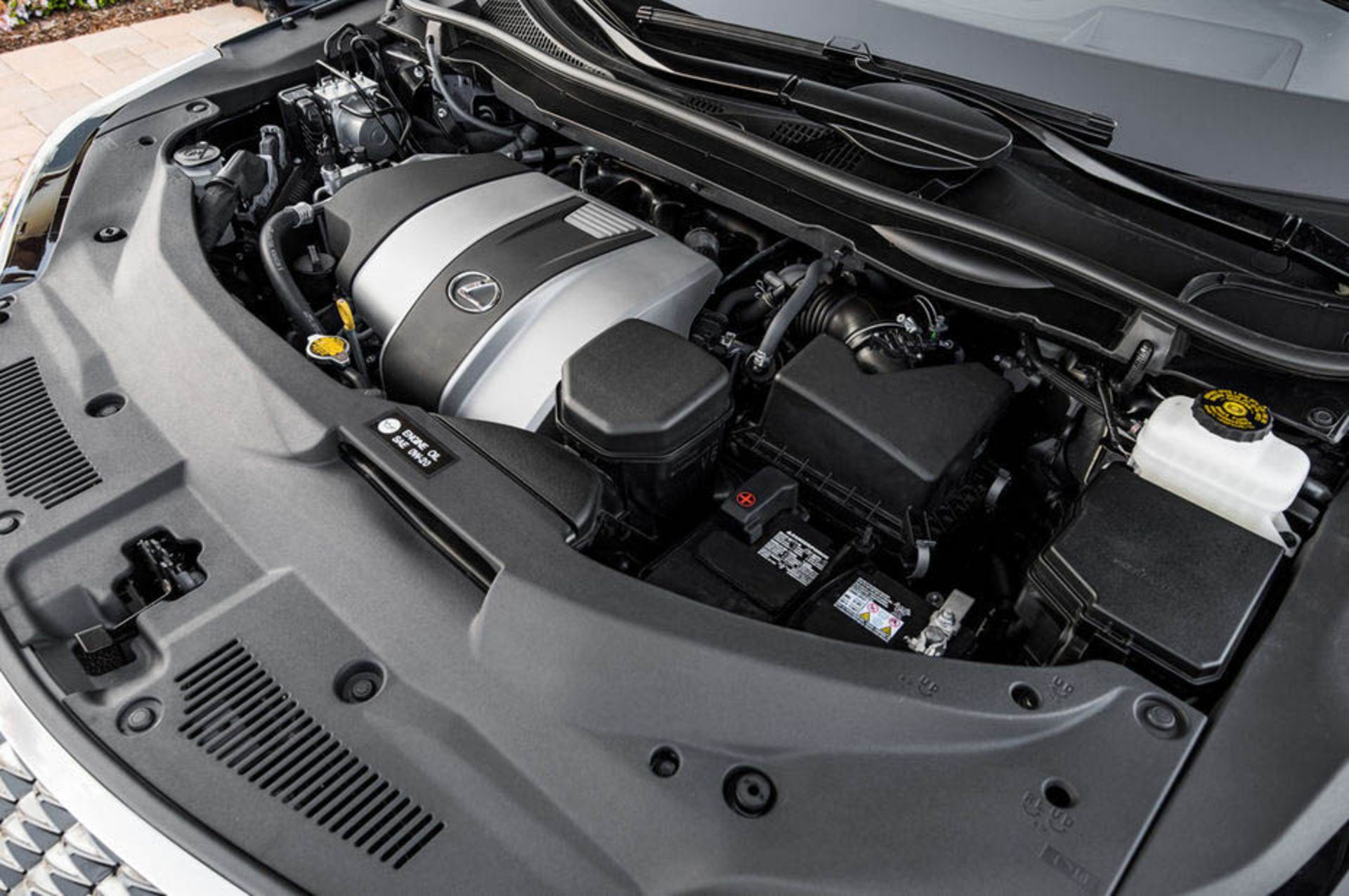 چهرهی پرخاشگر RX 350 اف اسپورت این حقیقت را پنهان میکند که چهارمین نسل این خودرو در زیر کاپوت ملایم و مهربانتر است. این خودرو در بخش پیشرانه تغییر قابلملاحظهای را نسبت به مدل اف اسپورت 2013 نشان نمیدهد. پیشرانه هنوز هم 6 سیلندر 3.5 لیتری تنفس طبیعی است اما قدرت آن با 20 اسب بخار افزایش به 295 اسب بخار رسیده است.
