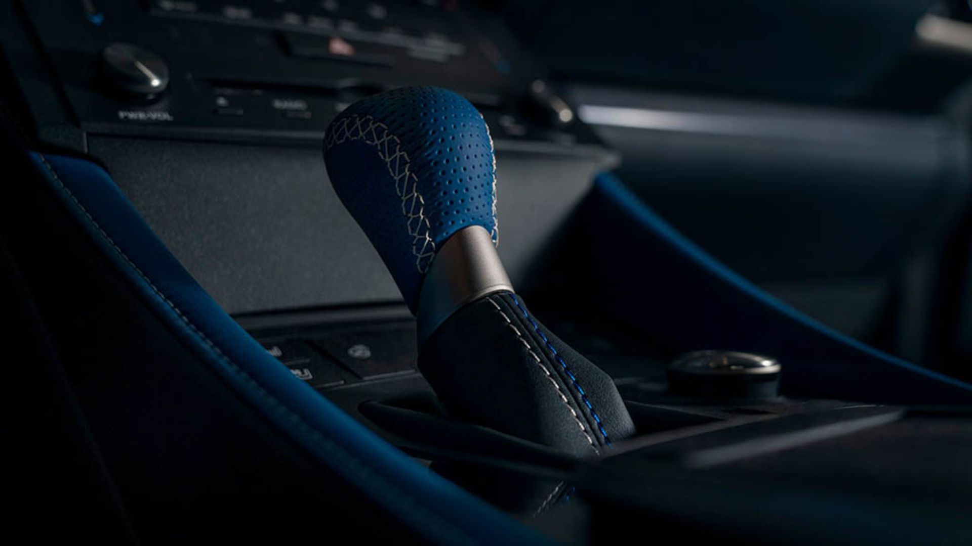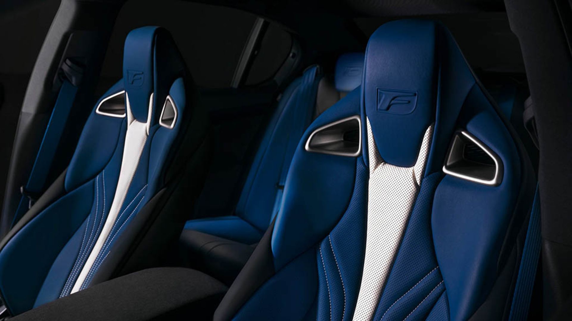 این استایل دو رنگ در نسخه GS F نیز دیده میشود زیرا این سدان بسیار شبیه برادر کوپه است. البته در آن شاهد کمربندهای ایمنی آبی و عناصر جیر روی داشبورد هستیم.