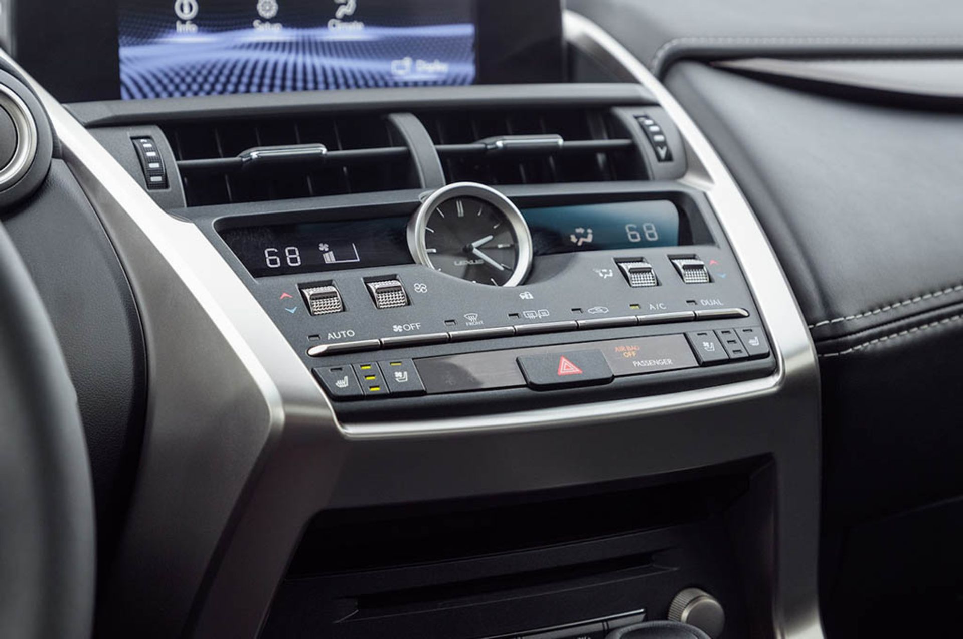 در داخل کابین هم صفحه نمایشگر 8 اینچی در ابتدا جلب توجه می‌نماید و در صورت سفارش سامانه مسیریابی، قطر صفحه نمایشگر مذکور تا 10.3 اینچ افزایش خواهد یافت که در نمونه مورد بررسی از همان صفحه ۸ اینچی بهره می‌بریم. هر دو مورد توسط نرم‌افزارهای ویژه لکسوس قابل به‌کارگیری هستند و یک هات-اسپات وای-فای جدید نیز به کار گرفته شده است. تاچ-پد کنترلر که برای کار با صفحه نمایشگر طراحی شده است، نسبت به قبل بزرگتر بوده و کار با آن نیز راحت‌تر است. در ضمن یک صفحه نمایشگر 4.2 اینچی در صفحه کیلومترشمار بین دو عقربه نشانگر سرعت و دور موتور تعبیه شده است. پکیج ایمنی لکسس موسوم به +safety system برای سال 2018 به صورت استاندارد عرضه شده که شامل تجهیزاتی نظیر ترمز خودکار اضطراری، هشدار انحراف از مسیر، کروز کنترل تطبیق‌پذیر، نور بالای خودکار و نگهدارنده اتوماتیک بین خطوط است.