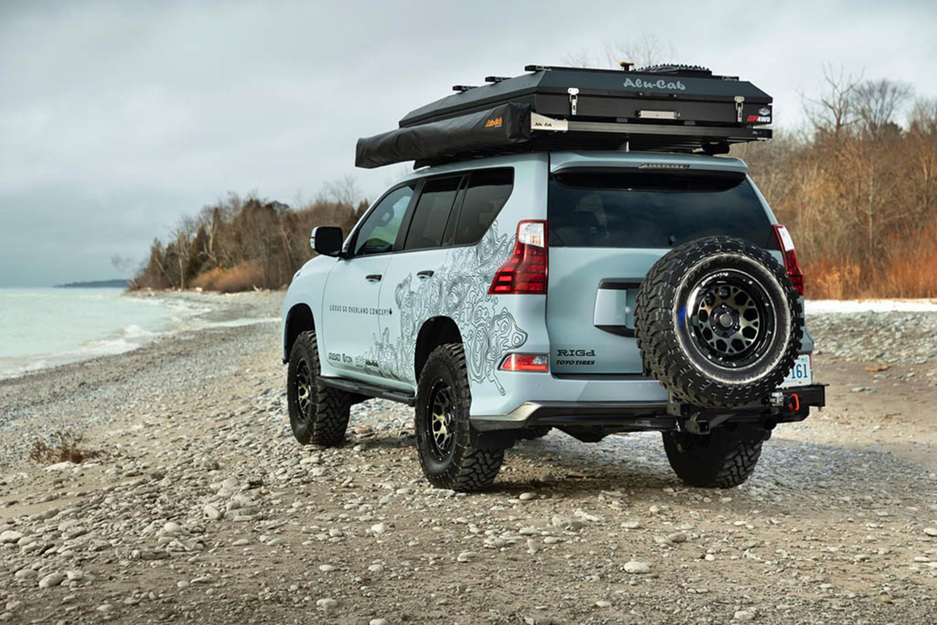 کانسپت موردبحث بر پایه لکسس GX 460 مجهز به پکیج اجرایی ساخته شده و از رینگ‌های آفرود منحصربه‌فرد، لاستیک‌های تویو، سیستم تعلیق سفارشی با بازه حرکتی بیشتر و... سود می‌برد. این ویژگی آخری باعث عبور بهتر از مسیرهای خشن می‌شود اما وقتی شرایط سخت شود GX اورلند تنها به سیستم تعلیق تکیه نخواهد کرد زیرا روی سپر یک وینچ گیرا نصب شده و زیر بدنه نیز محافظ‌های کاملی وجود دارند.