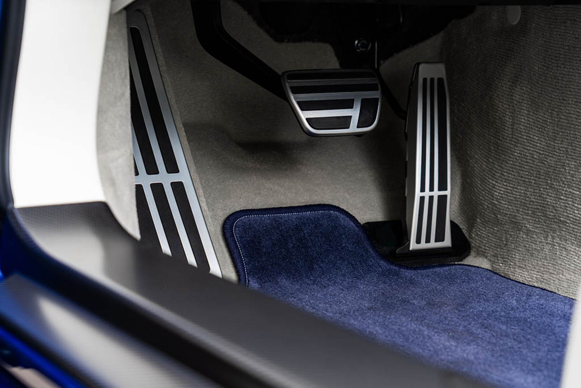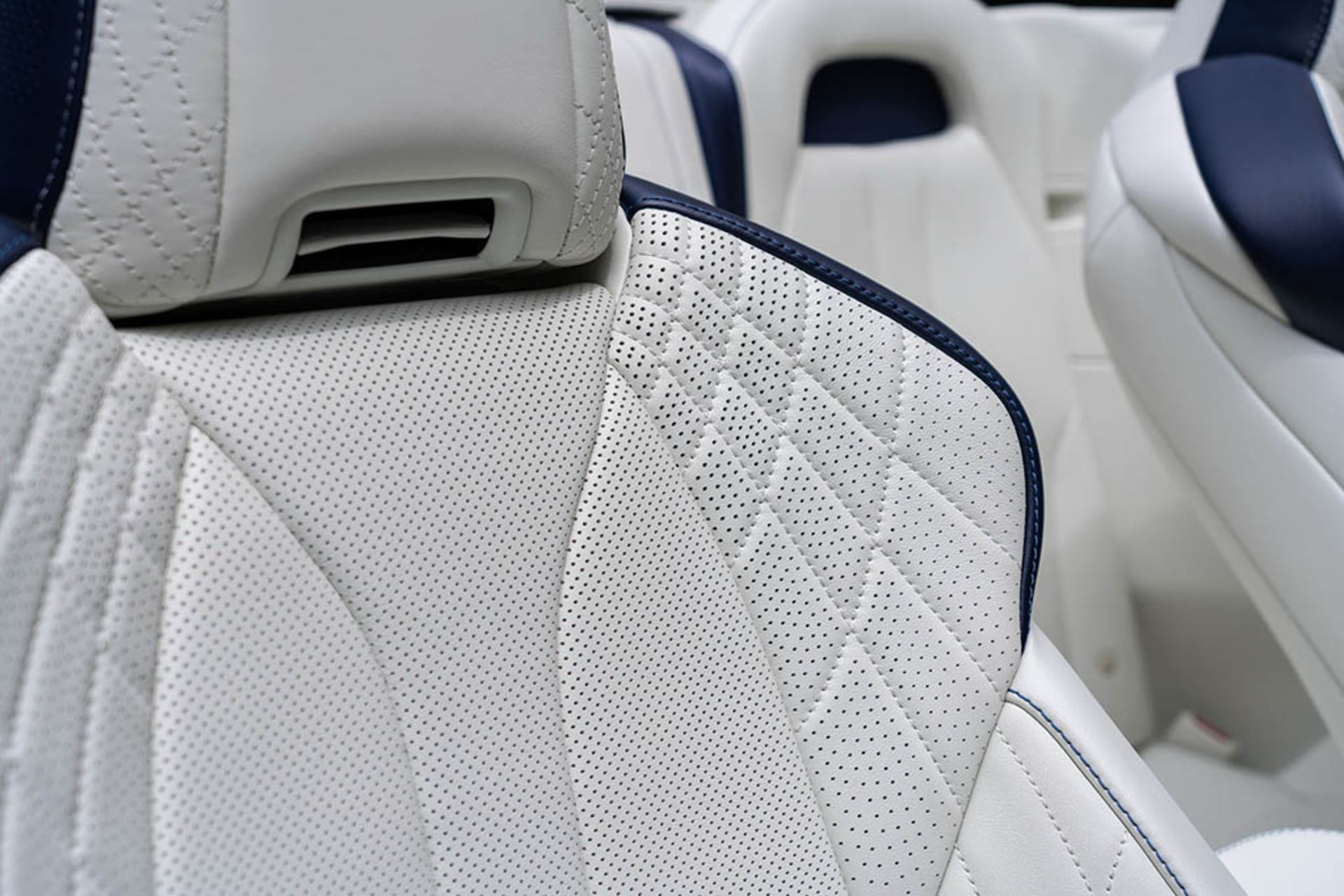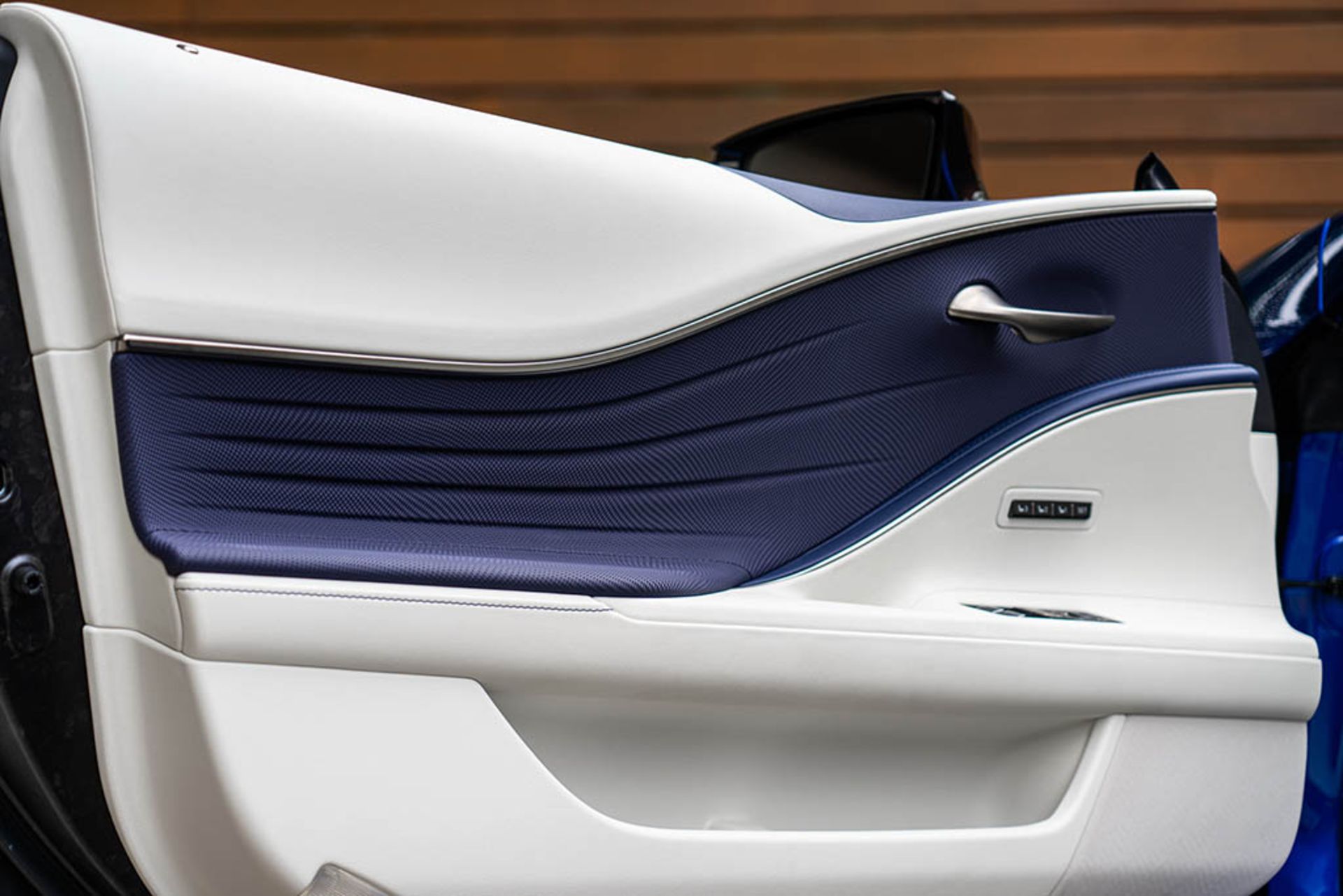 وقتی درب خودرو را باز کنید شاهد رنگ سفید در جایجای کابین خواهید بود. این رنگ روی پوشش سقف، پانل دربها، بخشهای پایینی داشبورد، کنسول مرکزی، فرمان، صندلیها، ستونها و... بکار رفته است. رنگ آبی تیره نیز بخش بالایی داشبورد، صندلیها و پانل دربها را پوشانده است تا ترکیب رنگی مناسبی ایجاد شود.