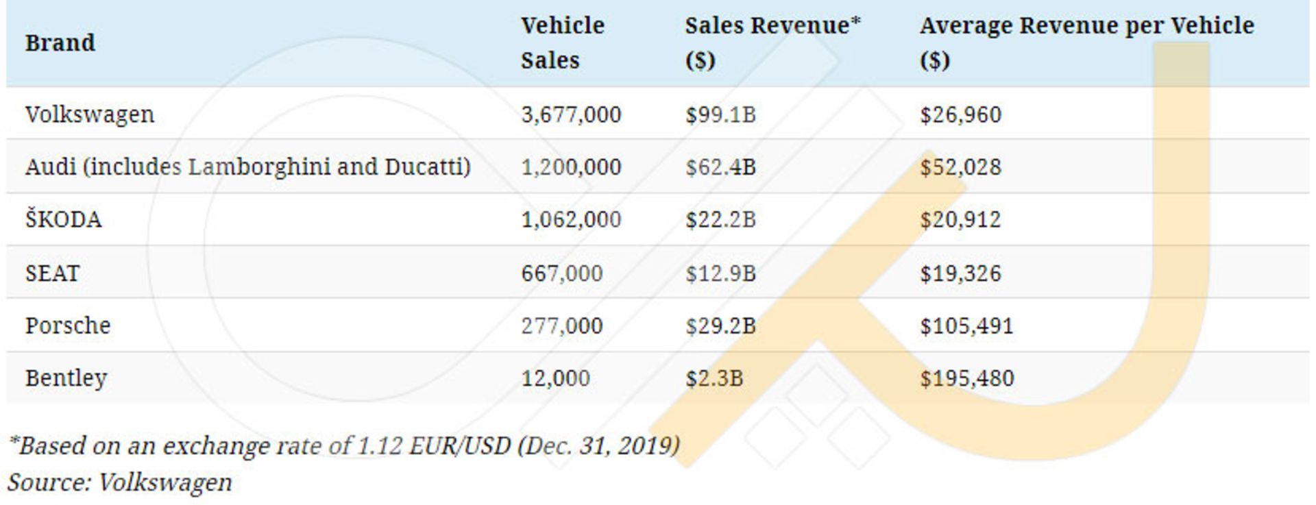 البته دیدن گروه فولکسواگن در صدر این لیست سورپرایز کننده نیست زیرا برخی از برندهای زیرمجموعه آن یعنی لامبورگینی، آئودی، پورشه، بنتلی، بوگاتی و... جزو سودده ترین شرکتها هستند. تویوتا اما برندهای بسیار کمتری داشته و محصولات خود را با دو برند اصلی تویوتا و لکسس به فروش میرساند. درآمد تویوتا همچنین تقریباً دو برابر رقیب هموطن خود یعنی هوندا (4537.67 دلار) بوده است.