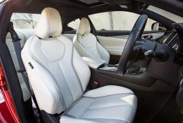 صندلیهاش خیلی راحت و خوش نشیمن هستند و کاملاً مناسب گشتوگذار در شهر و یا بزرگراه طراحی شدن اما وقتیکه مثلاً ریچارد میخواد پیش نامزدش یه خودی نشون بده و با سرعت پیچ رو رد بکنه، شاید نامزد ریچارد به خاطر همین موضوع مجبور بشه ریچ رو تنها بذاره، چون یه مقداری ممکنه توی جاش موقع دور زدن احساس امنیت نکنه؛ البته فعلاً اون آئودی داره و من اینفینیتی. چرم صندلیها هم خیلی نرمه. شاید نرمترین جنس رو در این بین داشته باشه اما در عین حال خیلی هم لغزندس. فضای سر در قسمت جلو و همچنین ردیف دوم بسیار کمتر از بامو است.
