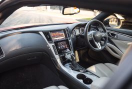 کابین کیو 60 کاملاً بی نظیره، نه تنها به خاطر صندلیهای سفید چرمی خیلی شیک و زیباش، بلکه به موجب شمای کلی کابین که راهبرد زیبایی و اعتدال رو توأمان دنبال میکنه. البته بعضی متریال بکار رفته در کابین چندان ارزشمند به نظر نمیرسن، بعضی فلزات حس پلاستیکی بودن رو منتقل میکنن و میشه گفت این رفیق ژاپنی من به اندازه رفقای اروپایی خودش چندان با کیفیت هم نیست.