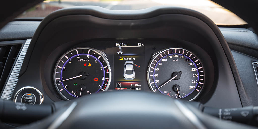 [هموند] هر سه خودرو ترمز اضطراری خودکار دارن، اینفینیتی سیستم هشدار برخورد از جلو، ترمز اتوماتیک معکوس، تشخیص عابر پیاده، نمایشگر نقاط کور و سیستم جلوگیری انحراف از مسیر داره. ماشین خودم یعنی آئودی به سامانه هشدار ترافیک پشت سر، نمایشگر نقاط کور، هشدار باز بودن دربها، سیستم هشدار ترافیک عبوری به هنگام دور زدن مجهز شده. BMW هم از سیستم هشدار انحراف و تغییر مسیر و سیستم کمکی پارک برخوردار شده.