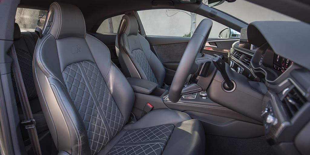 پشت فرمان آئودی همه چیز بهطور واضح در دسترس هست، از سیستم اطلاعات سرگرمی گرفته تا موقعیت اهرم تعویض دنده. تریم چرمی دربها و صندلیهای مزین به دوخت الماس فرم، سر انگشتان هر لمس کنندهای رو برای لحظهای به بهشت میبره. واقعاً فوقالعاده است. این ماشین، خالق و مالکش رو رستگار خواهد کرد.