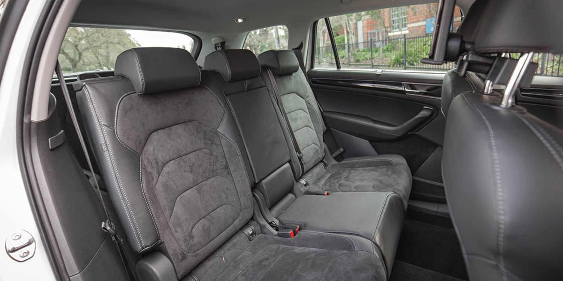 در ردیف دوم اشکودا علاوه بر فضای بسیار مناسب تجهیزاتی نظیر شیشه‌های اتوماتیک، تلق دودی به‌منظور کاهش اشعه آفتاب، نگه‌دارنده تبلت با 12 سوکت، چراغ مطالعه LED، محل قراردادن کت بر روی ستون B، صندلی‌های تاشونده با درجه تفکیک 40:20:40 و تکیه‌گاه دست تاشو با قابلیت جایگیری فنجان، بر راحتی هرچه بیشتر سرنشینان تأکید دارند.