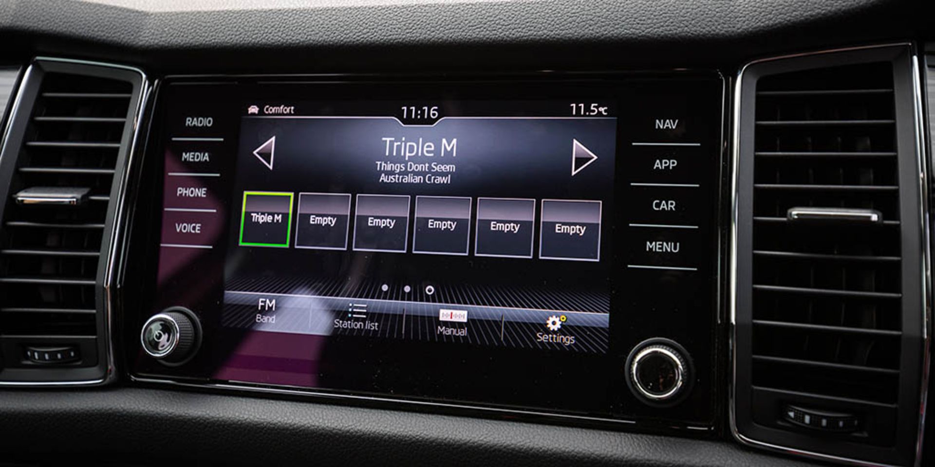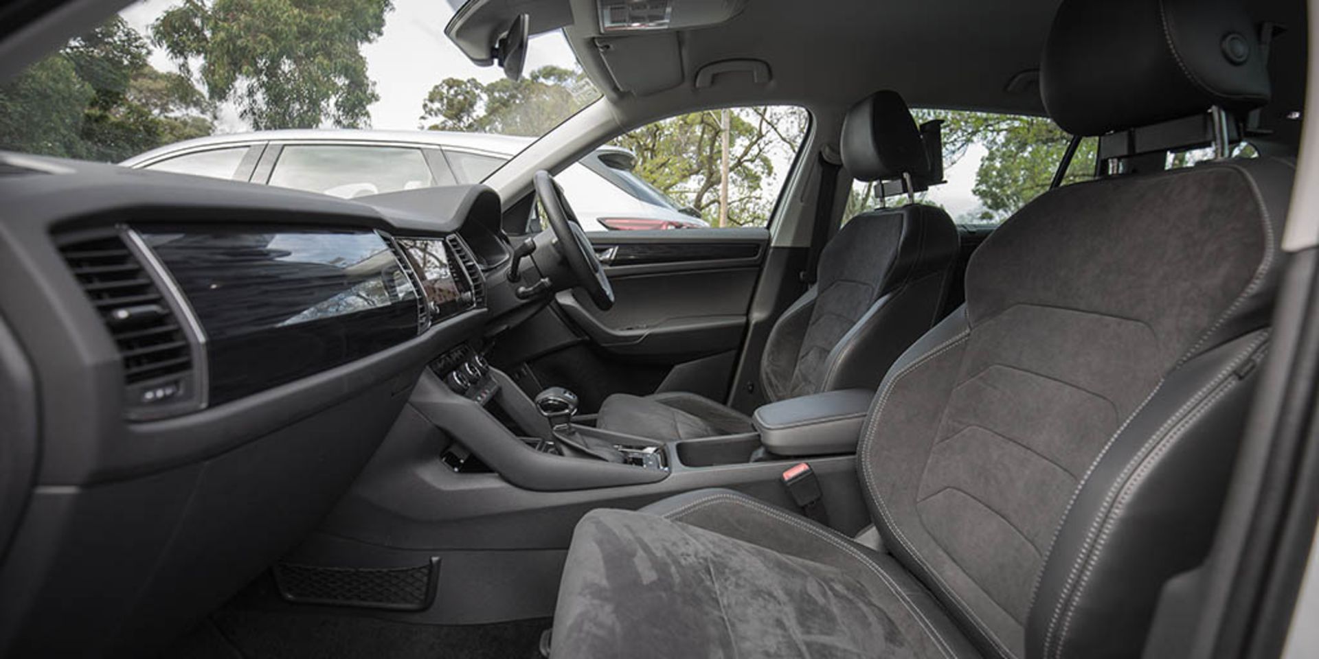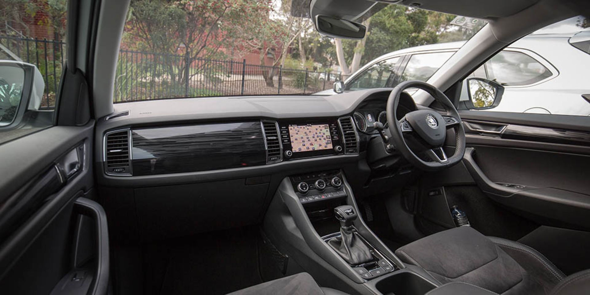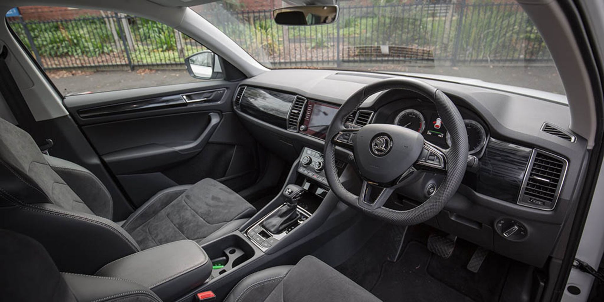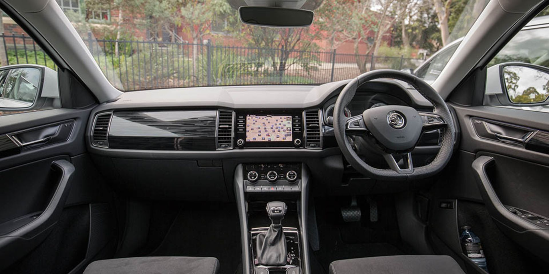 تک‌تک ذرات تشکیل دهنده داشبورد رایحه خوش فولکس‌واگن را به مشام می‌رساند، از طرح‌بندی زیبا و با سلیقه آن گرفته تا صفحه نمایشگر لمسی فوق مدرن و متریال باکیفیت استفاده شده در نمای روبروی کابین، غربیلک فرمان دوست‌داشتنی، صفحات ضربه‌گیر فولادی، سرعت‌سنج دیجیتال، نورپردازی به رنگ سبز چشم‌نواز و بسیاری از تنظیمات مخصوص حرکت در مسیرهای آفرود و محیط‌های مختلف درون سیستم اطلاعات سرگرمی، همه و همه کیفیت بالایی را برای مالکان کودیاک به ارمغان می‌آورد. وجود چتر درون پنل درب‌های جلو و استفاده از قطعه پلاستیکی نرم لای درب‌ها جهت جلوگیری از آسیب رسیدن به انتهای آنها به هنگام باز نمودن را بایستی به لیست خصوصیات هوشمندانه اشکودا اضافه نماییم. البته مواردی همچون عدم وجود صندلی قابل تنظیم الکتریکی و تریم براق با ظاهری چوبی که درواقع از جنس پلاستیک ساخته شده، کمی دلسردکننده هستند.