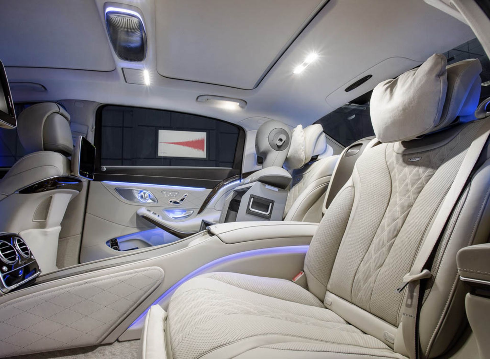 صندلی‌های عقب شما را به یاد تخت‌های پادشاهان می‌اندازد، جنسشان در قسمت‌هایی از چرم گوساله بوده و پشت‌سری‌ها نیز مجهز به بالشتک و از جنس آلکانتارا (Alcantara) هستند. پشتی صندلی قابلیت خم شدن تا اندازه 43.5 درجه را دارد که به همراه فضای پای 12.8 اینچی (که حدود دو برابر 6.5 اینچ S600 استاندارد است) به نظر نمی‌رسد ازنظر فضا مشکلی داشته باشید! البته صندلی جلو هم با دکمه‌ای که روی درب عقب جاسازی‌شده می‌تواند برای تنظیم فضا به جلو و عقب حرکت کند!
