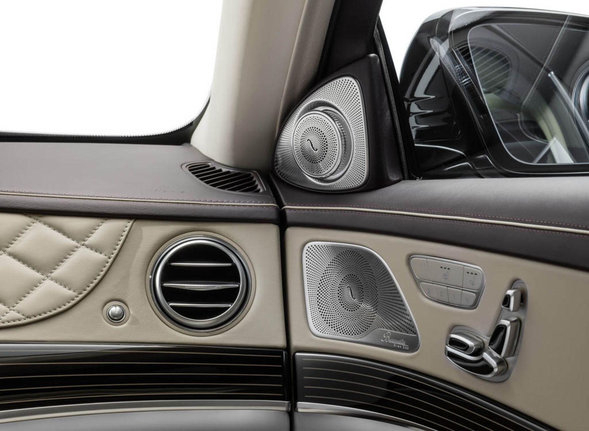 سیستم صوتی 1540 واتی نیز ساخت Burmester با 24 بلندگو و 24 کانال تقویت‌کننده صدا است که صدای خروجی از آن بسیار عالی است. با روشن شدن پیشرانه بلندگوهای آلومینیومی دوّار چرخیده و بالا می‌آیند تا شروع به انجام‌وظیفه کنند. در بسیاری از قسمت‌ها از چرم ناپا (Nappa) و طرح لوزی شکل استفاده‌شده که حس سنگین و باوقار بودن به کابین داده است.