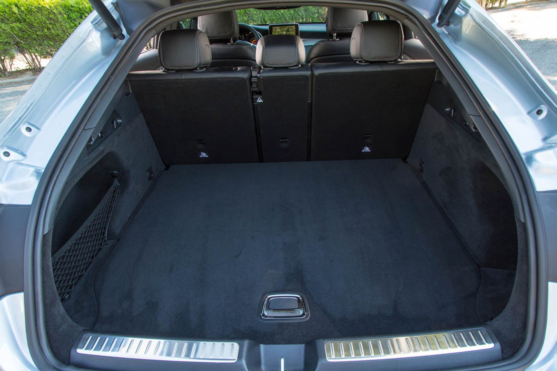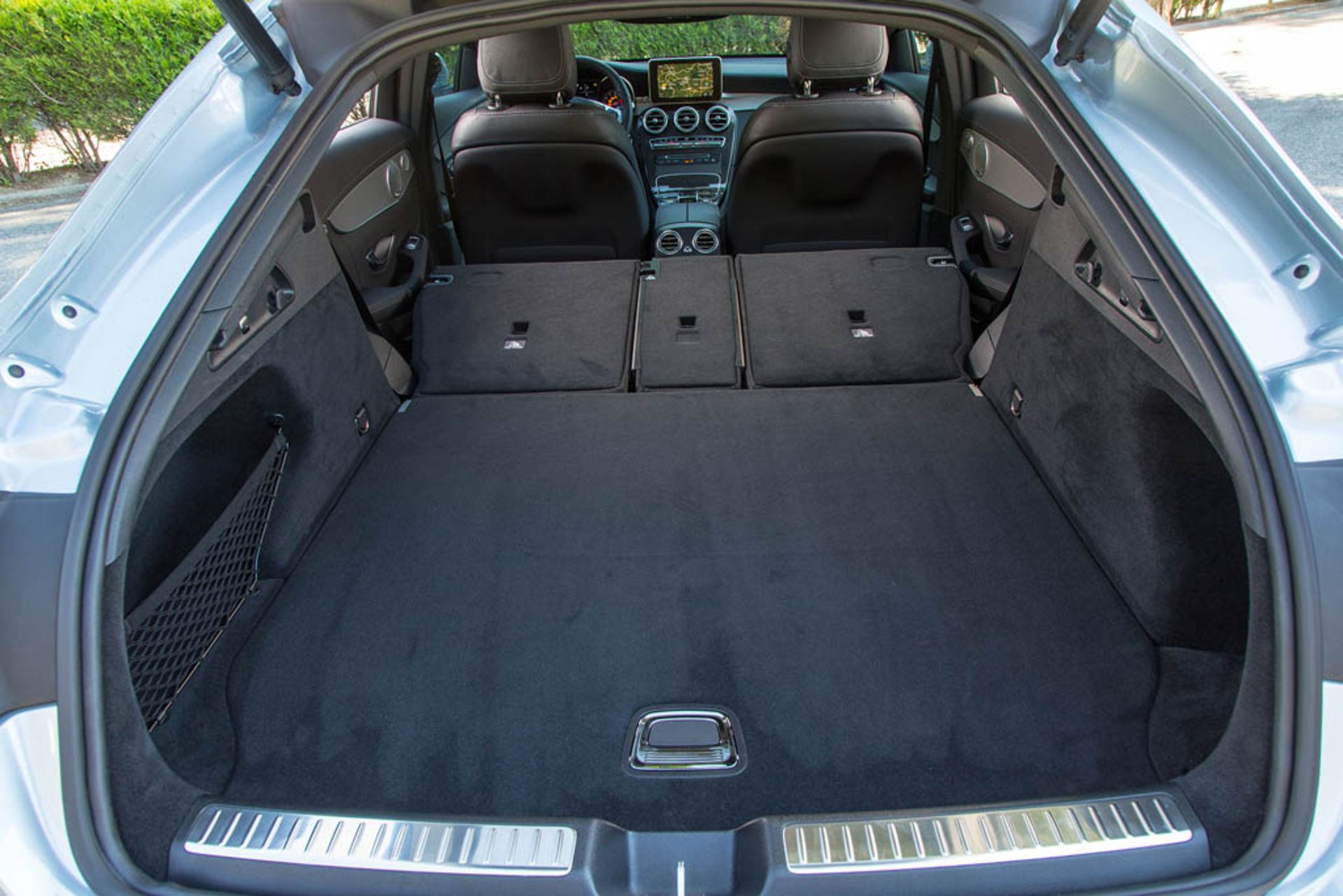 کار سختی است که ظاهر بلندقد و بزرگ یک شاسیبلند را در هیبت یک خودروی لوکس زیبا به نمایش درآورد. GLC کوپه به در هیچ جای بدنه به اندازهی ماکان عضلانی نیست. این طراحی کوپه ظرفیت بارگیری نسبتاً مناسبی را برای خودرو به همراه دارد. سه یا چهار کیف متوسط میتواند در فضای بار خودرو جای بگیرد. خودروهای سفارش آمریکا لاستیکهای ران فلت خواهند داشت بنابراین فضای اضافی زیر فضای بارگیری نیز وجود خواهد داشت اما باز هم میگوییم که این فضا فقط برای کیفهای نرم است. اگر فضای زیادی میخواهید باید GLC عادی بخرید.