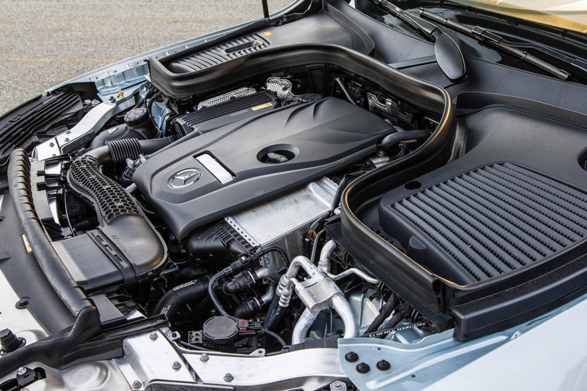 GLC کوپه اساساً نسخهی تغییر شکل یافتهی GLC معمولی است که اوایل امسال در ایالاتمتحده عرضه شده است. اگرچه که این خودرو در مجموع در طول و ارتفاع به ترتیب 7.6 و 3.5 سانتیمتر کوتاهتر و کم ارتفاع بوده اما فاصلهی بین محوری یکسانی را با برادر خود به اشتراک میگذارد. این خودرو در بازارهای دیگر با پیشرانههای 2.2 لیتری دیزل و پلاگین هیبرید هم در دسترس بوده اما در زیر کاپوت GLC300 سفارش آمریکا همان پیشرانهی آشنای 4 سیلندر خطی با قدرت 241 اسب بخاری و گشتاور 370 نیوتون متری قرار دارد. این پیشرانه به گیربکس 9 سرعته اتوماتیک نرم و روان مرسدس متصل است.