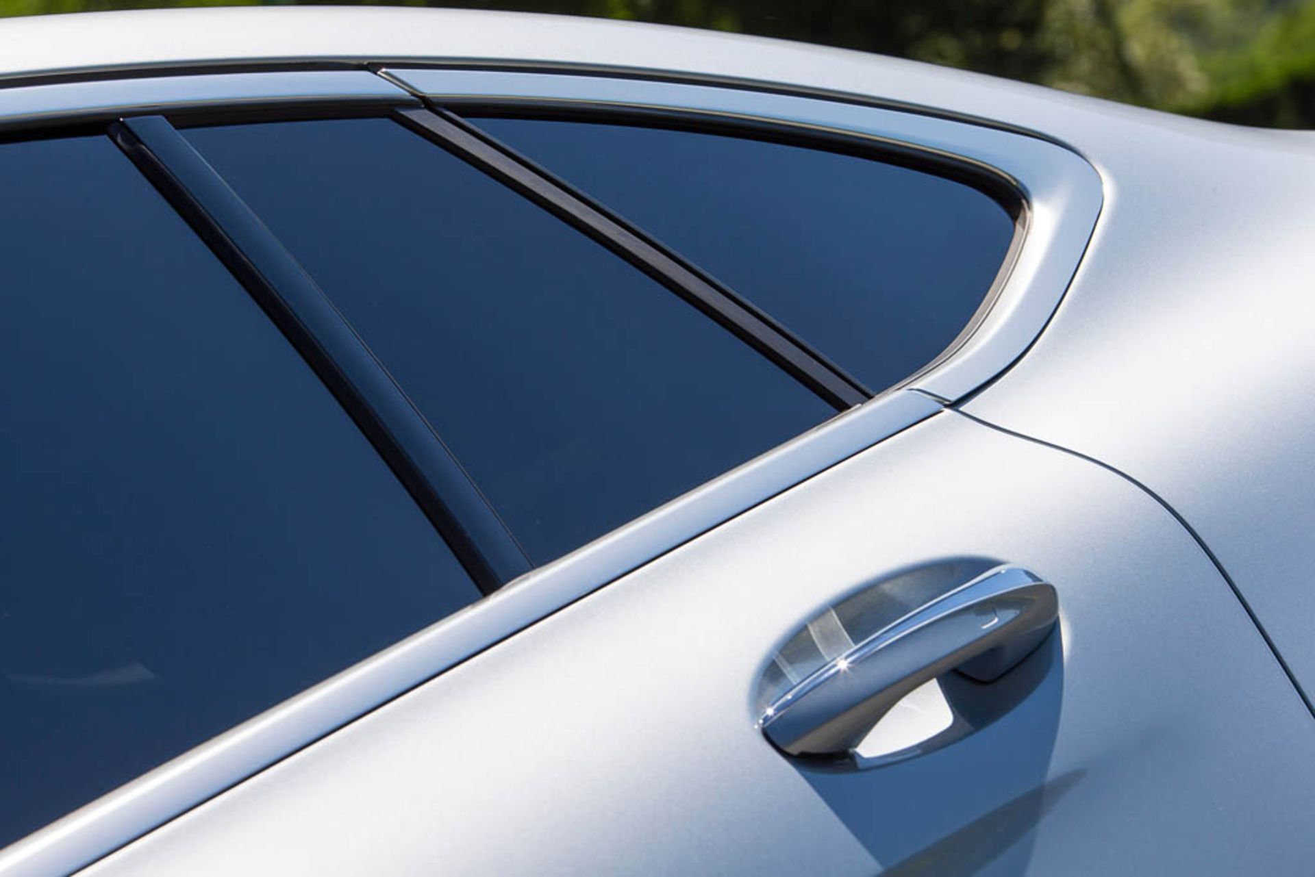 نمای جلوی خودرو نیز پایه و اساس خود را از GLC300 عادی گرفته اگرچه که جلوپنجرهی اسپورت تر و اسپلیتر چشمگیرتری دارد. از ستون A به سمت عقب نمای خودرو منحصربهفرد است. شیشهی جلو بیشتر خمیده شده و پوستهی دربهای جدید خط کمر بالاتری را به نمایش میگذارند. پانلهای عقبی با شیبی زیاد به ستون C متصل شدهاند. برفپاککن شیشه عقبی وجود ندارد و مرسدس ادعا میکند با توجه به طراحی خاص بخش پشتی و اسپویلر لبهای، قطرات باران روی شیشهی عقبی نمینشینند.