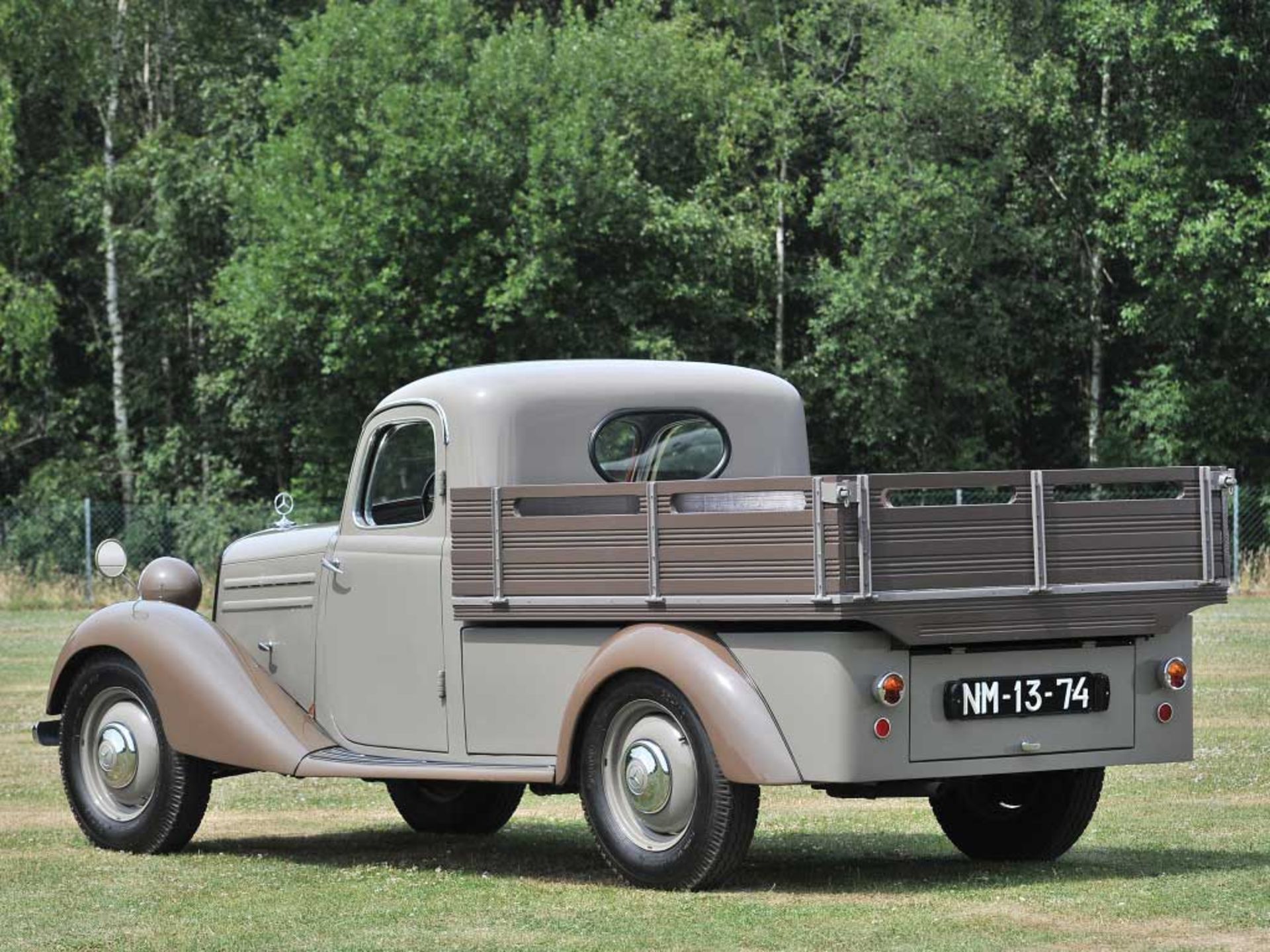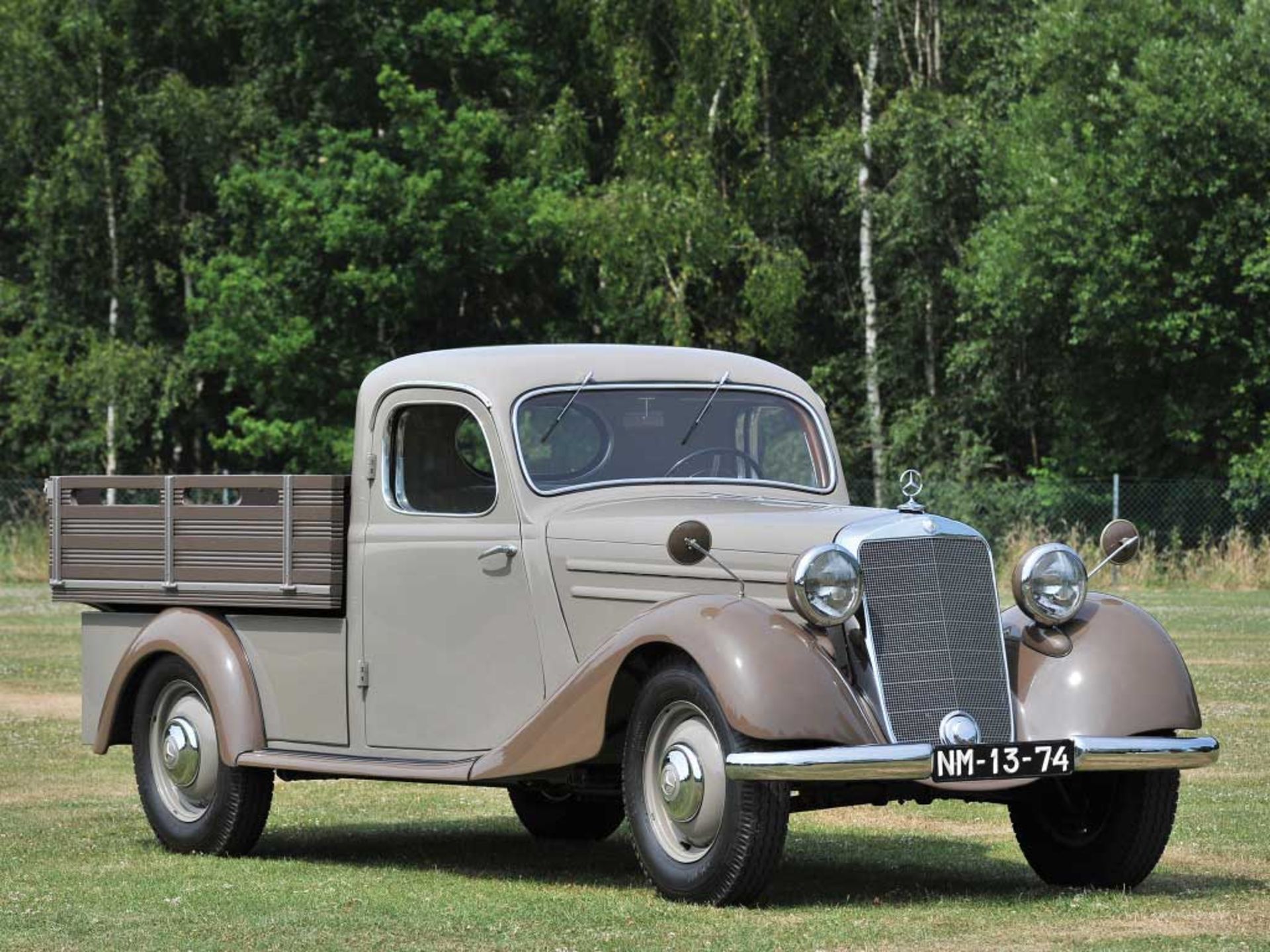 مرسدس بنز در سال 1936 مدل 170 V را معرفی کرد که نهفقط بهصورت وانت که در مدلهای دیگری چون سدان، رودستر، استیشن و کابریولت هم تولید شد. حتی از این خودرو یک نسخهٔ چهارنفرهٔ کابریولت با سقف پارچهای بزرگ و نسخههای متعدد دیگری برای خدمات تاکسی، پلیس، آمبولانس و ارتش نیز به تولید رسید. حرف V در نام این خودرو از کلمهٔ آلمانی Vron به معنای جلو گرفته شده و به نصب موتور در جلوی آن اشاره دارد درحالیکه در همان سالها مرسدس بنز مدل 170 H را هم تولید میکرد که خودرویی موتور عقب بود و حرف H آنهم از کلمهٔ آلمانی Heck به معنای عقب گرفته شده بود. هردوی این خودروها از یک پیشرانهٔ مشابه 1.7 لیتری چهار سیلندر با 37 اسب بخار قدرت استفاده میکردند که نیروی آن از طریق یک گیربکس چهار سرعتهٔ دستی به چرخهای عقب منتقل میشد. تولید 170 V در دوران جنگ جهانی دوم متوقف شود و سپس بعد از پایان جنگ دوباره تولید آن در می سال 1946 از سر گرفته شد. این اولین خودروی مرسدس بنز بود که بعد از جنگ جهانی دوم به تولید رسید.