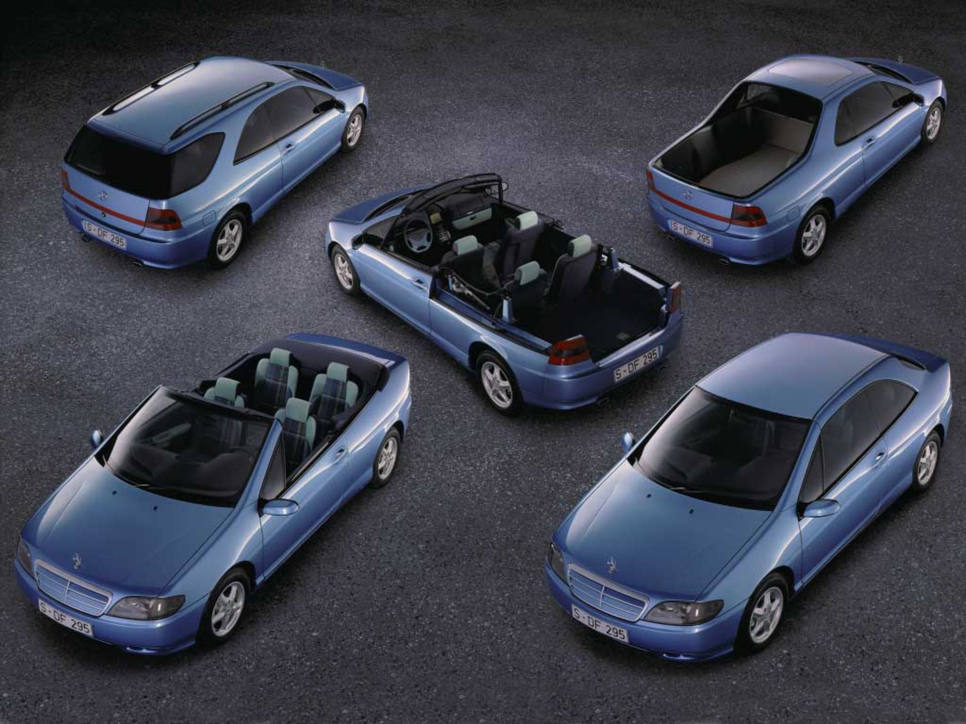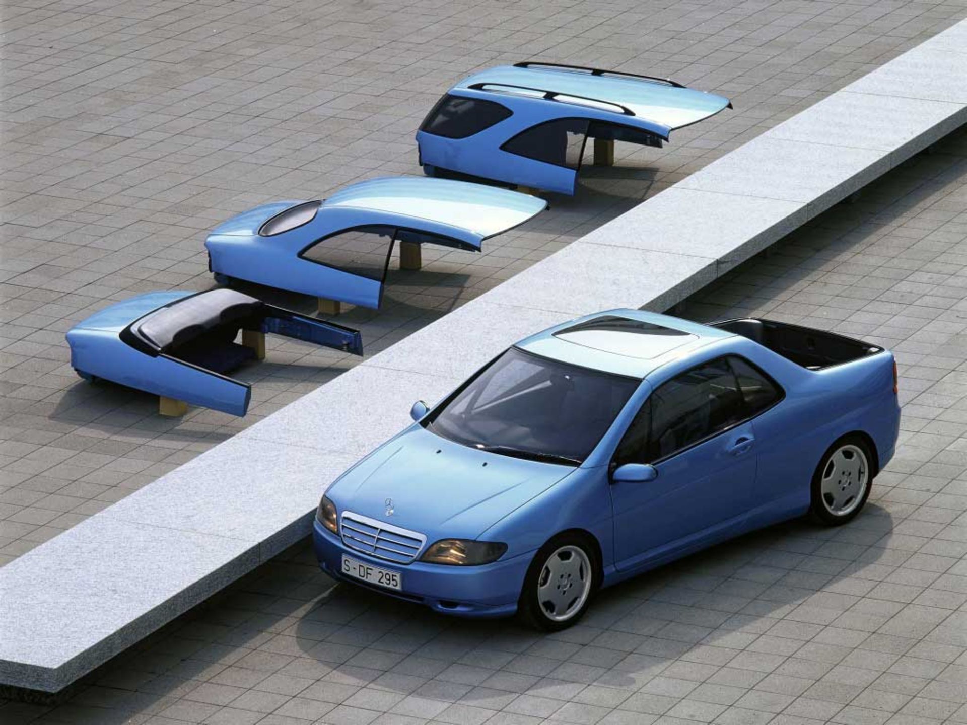 در سال 1995 مرسدس بنز با معرفی کانسپتی بنام واریو، ایدهٔ ایجاد چهار خودرو در یک خودرو را مطرح کرد. این یک خودروی نمایشی دیفرانسیل جلو و وسیلهای چندمنظوره بود که میتوانست به انواع مختلف سدان، استیشن، کابریولت و پیکاپ تبدیل شود. تغییر هریک از این مدلها به نوع دیگر نیز 15 دقیقه طول میکشید. همچنین کانسپت واریو اولین خودروی مرسدس بنز بود که به فناوری رانندگی با سیم برای ترمزها و فرمان مجهز شده بود.