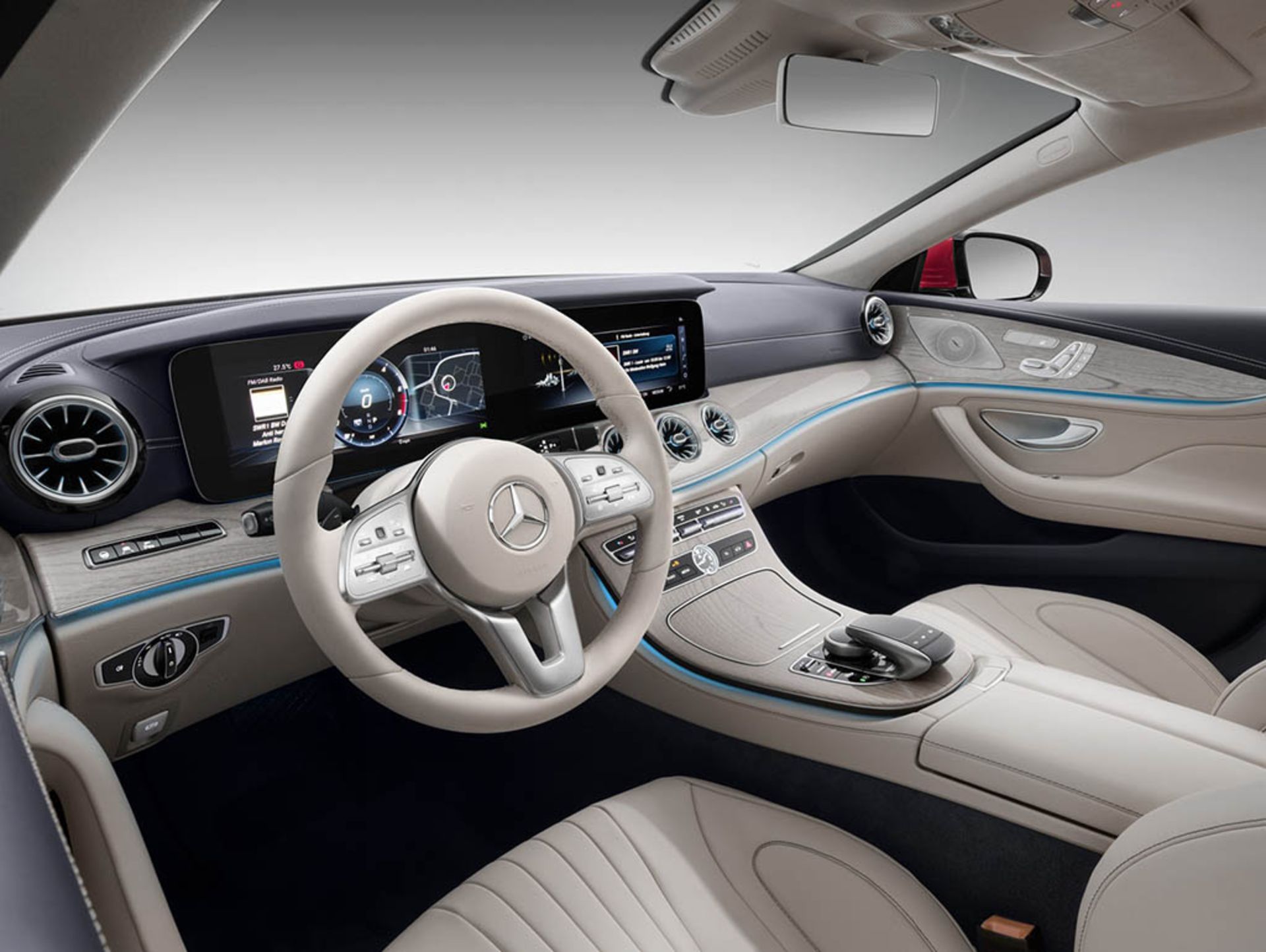 داخل کابین این خودرو نیز صندلی‌های جلوی گرم شونده، پوشش چرمی و 5 تریم چوبی متفاوت دیده می‌شود. این خودرو همچنین از غربیلک فرمان پوشیده از چرم، سانروف برقی و داشبورد MB-Tex با دوخت‌های خاص برخوردار است. از دیگر ویژگی‌های CLS 450 می‌توان به صندلی عقب سه‌نفره، نورپردازی داخلی زیبا و سیستم اطلاعات سرگرمی 12.3 اینچی با ناوبری جی‌پی‌اس اشاره کرد.