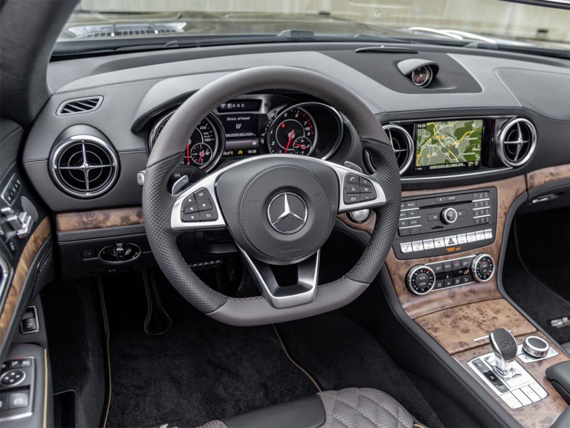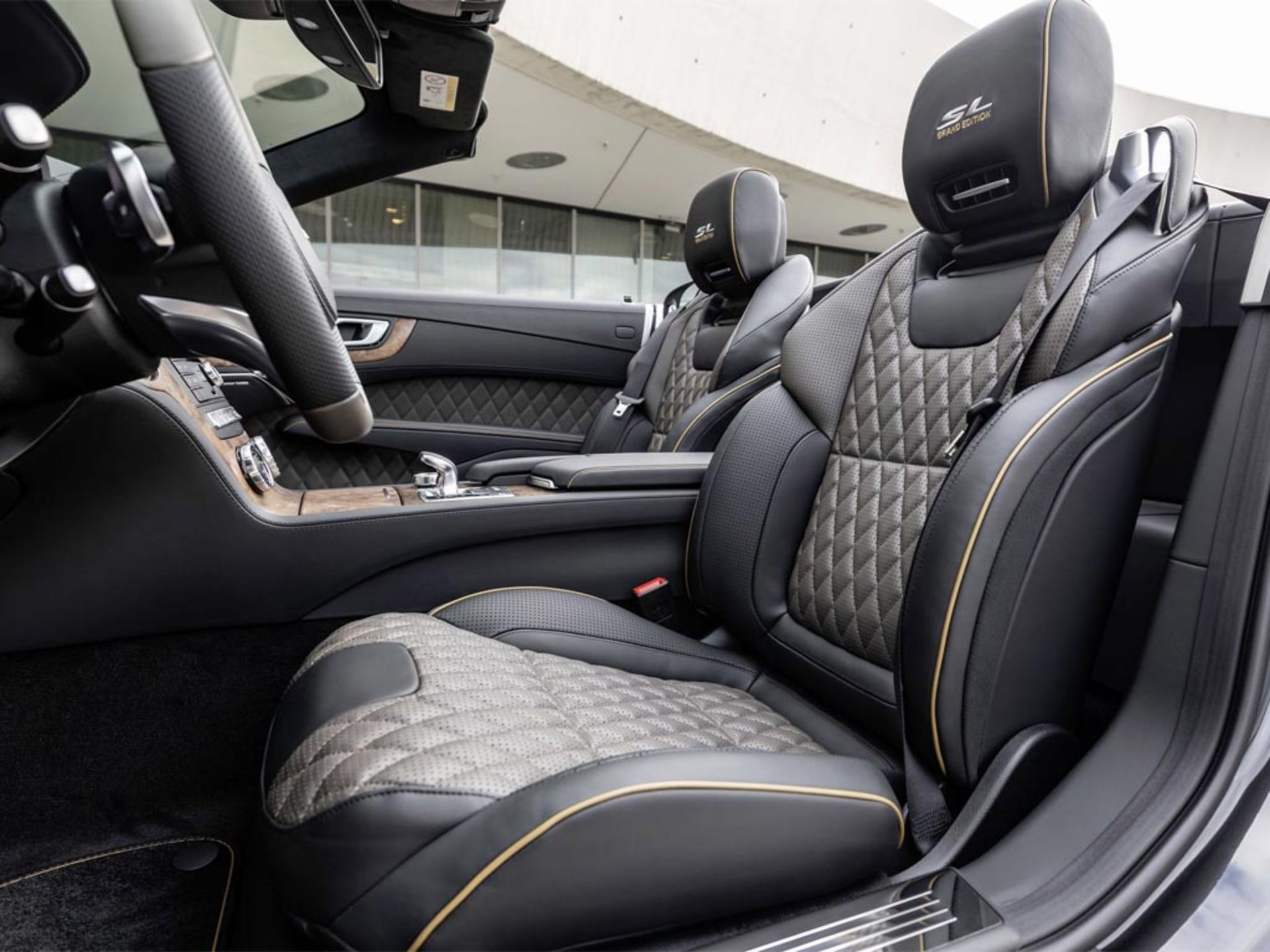در داخل هردو مدل SL گرند ادیشن نیز چرم قهوهای مرواریدی در قسمتهای مختلفی مثل صندلیها و غربیلک فرمان ارائه شده است. علاوه بر این، در اینجا چرم ناپای مشکیرنگ، سطوح فلزی روشن و سیستم گرمایش گردن Airscarf مرسدس بنز هم به چشم میخورد. ازجملهٔ سایر ویژگیهای داخلی SL گرند ادیشن نیز میتوان به صندلیهای چندکارهٔ فعال با ماساژور، کنترل دمای درون صندلیها، سیستم کمک پارک فعال و پکیج کمکراننده پلاس اشاره کرد.