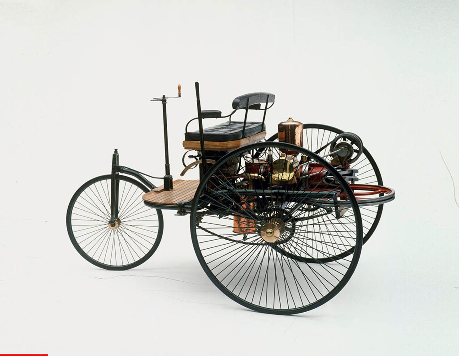 اولین خودروی این شرکت که توسط کارل بنز در سال 1886 ساخته شد حتی فرمان نداشت. بجای فرمان از دو شاخ فرمان سود می‌برد زیرا کالسکه‌چی‌ها معمولاً از تسمه‌ها برای تصحیح مسیر حرکت اسب‌ها استفاده می‌کردند. اولین غربیلک فرمان توسط مهندسی فرانسوی به نام آلفرد واچرون ساخته شد. این فرمان در اولین مسابقه خودرویی دنیا یعنی پاریس به رون در جولای 1894 بکار رفت. واچرون رتبه یازدهم را در این مسابقه به دست آورد اما ایده‌ی فرمان او گرفت.