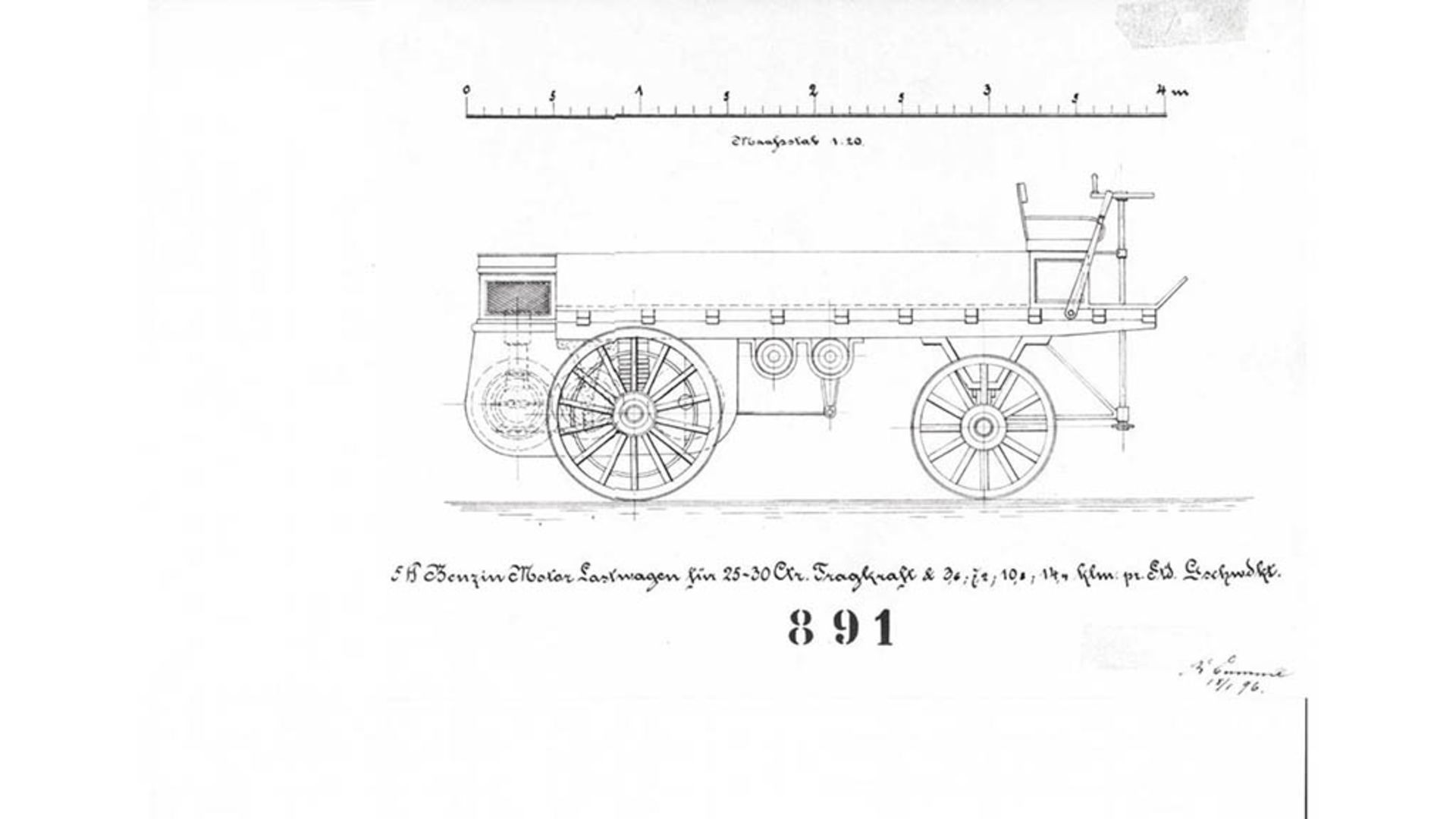 طبق بیانیه خبری منتشر شده توسط این شرکت آلمانی، گوتلیب دایملر که پیشتاز تولید پیشرانههای درونسوز و توسعه خودرو بوده اولین پیکاپ باری دنیا را در سال 1896 تولید کرده است. این وسیله نقلیه بر پایه پیشرفتهای قبلی بنا شده و از پیشرانه 2 سیلندر 1.06 لیتری استفاده کرده است.