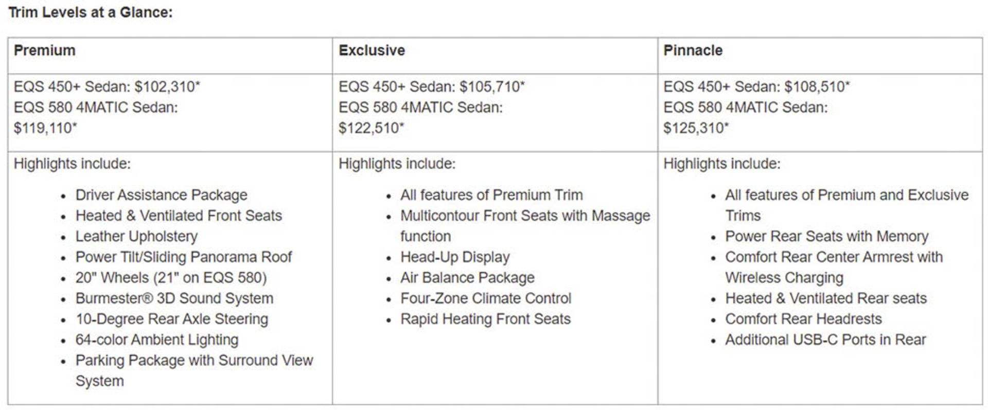 قیمت EQS در ایالات متحده از 102 هزار دلار برای مدل 450+ شروع میشود و تا 119 هزار دلار برای برادر بزرگتر افزایش مییابد. گرانترین تریم هم 125 هزار دلار برایتان آب میخورد.
