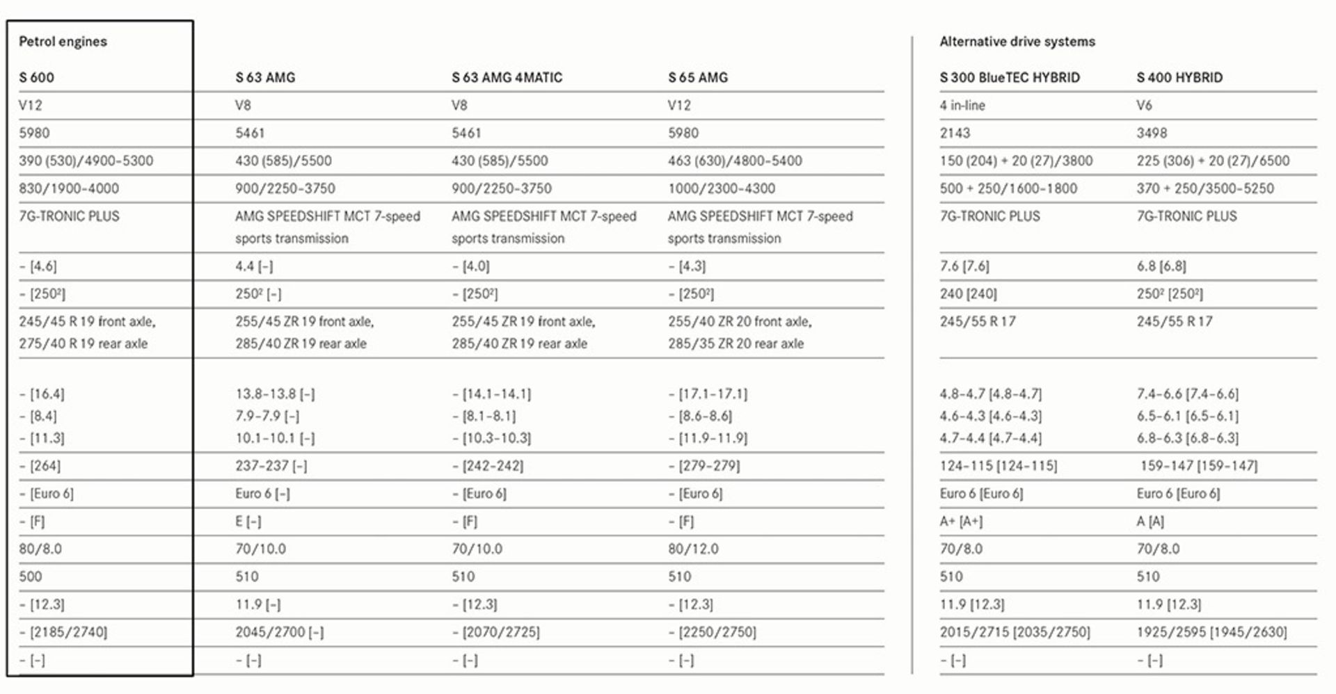 بنابراین S600 قوی‌ترین مرسدس بنز استاندارد نیست. زیرا S65 AMG با موتور 6.0 لیتری مجهز به توربوی دوقلوی خود 621 اسب بخار قدرت و 1000 نیوتن متر گشتاور تولید می‌کند.