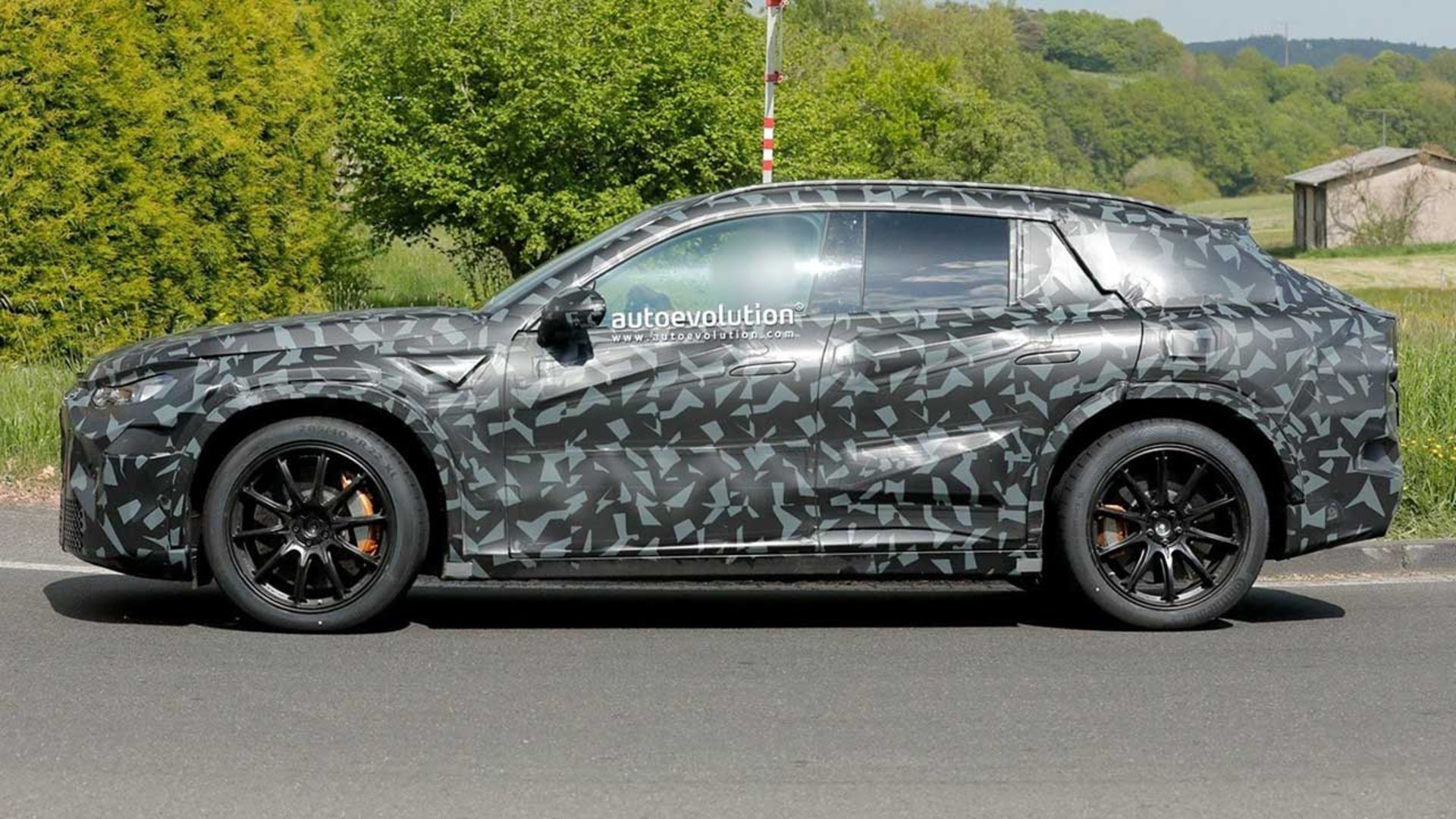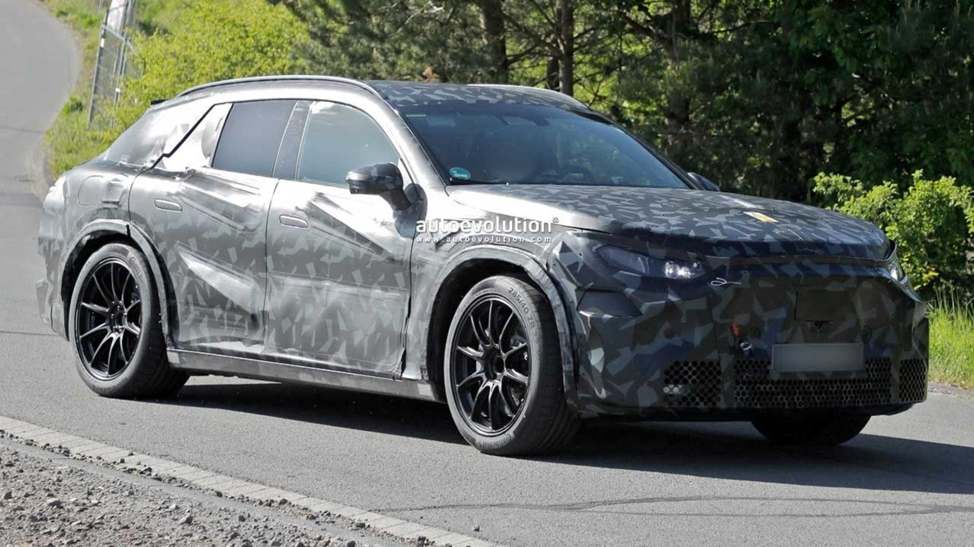 AMG GT شاسیبلند که در آلمان تحت آزمایش دیده شده، از طراحی جسورانهای برخوردار است. خط سقف صاف با شیب تند شیشه عقب، ظاهری اسپرت و آیرودینامیک ایجاد کرده است. دستگیرههای مخفی درها و درگاه شارژ در پنل عقب سمت شاگرد، از ویژگیهای مدرن این خودرو هستند. لاستیکهای کانتیننتال با ابعاد ۲۸۵/۴۰ در محور جلو و ۳۲۵/۳۵ در محور عقب، هردو روی رینگهای ۲۲ اینچی، نشاندهنده توانایی دینامیکی بالای این شاسیبلند هستند. ترمزهای کربن-سرامیکی عظیم نیز به بهبود عملکرد در مسیرهای چالشبرانگیز کمک میکنند هرچند طراحی نهایی چراغهای جلو و عقب هنوز مشخص نیست.