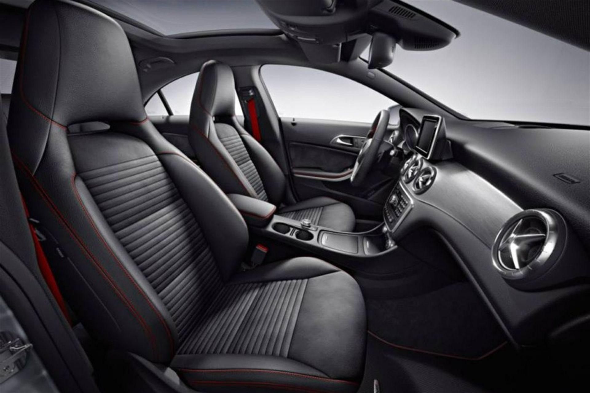 تغییرات بصری شامل سپرهای جلو و عقب متفاوت، رینگ‌های 18 اینچی آلیاژی AMG با کلیپرهای قرمزرنگ ترمز و یک نوار باریک قرمزرنگ در زیر سپرهای جلو و عقب می‌باشد. فضای داخل کابین نیز با چرم و جیر مشکی رنگ با کوک‌های قرمزرنگ پوشانده شده است. صندلی‌ها اسپرت بوده و کمربندهای ایمنی نیز به رنگ قرمز می‌باشند.