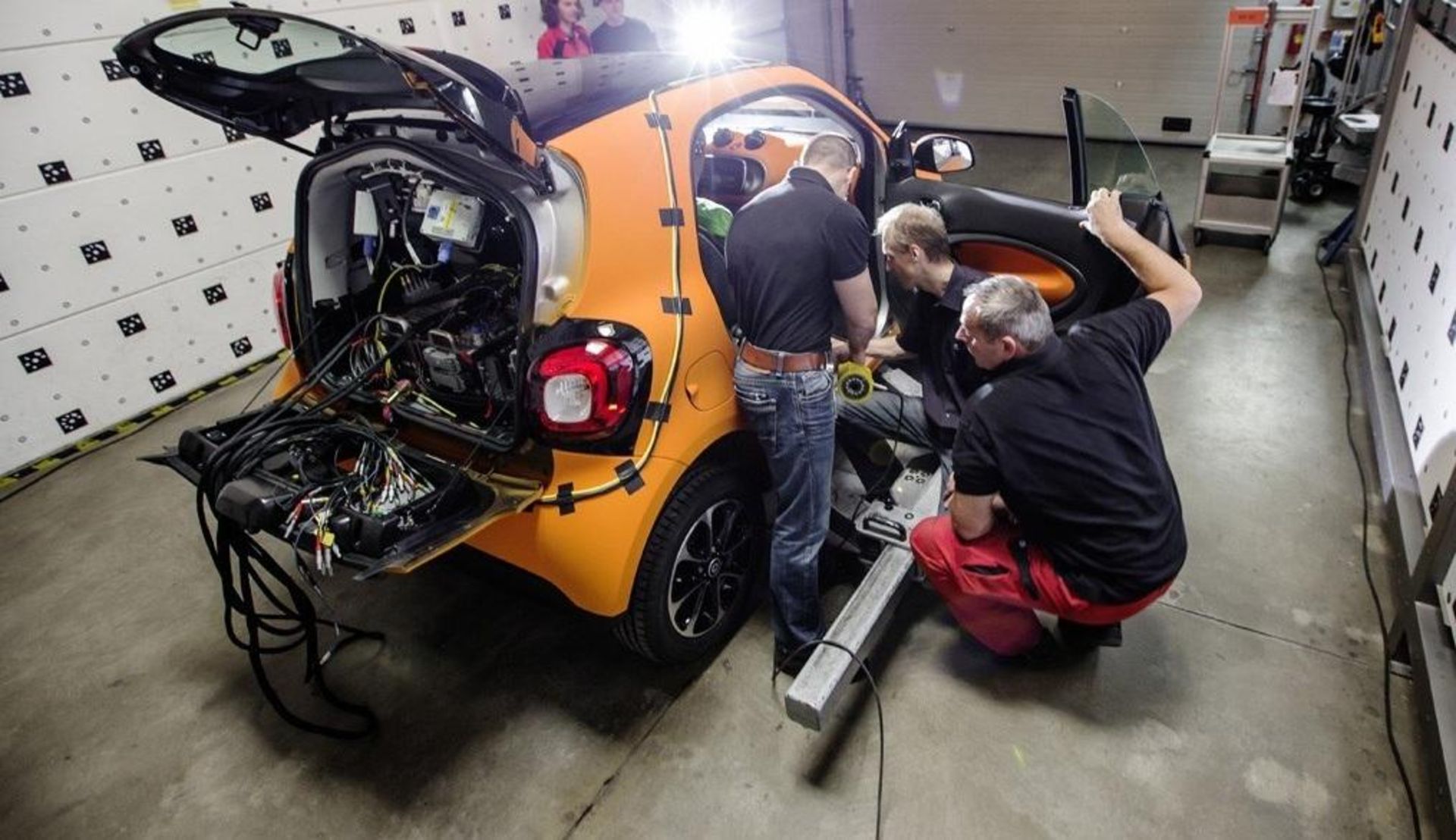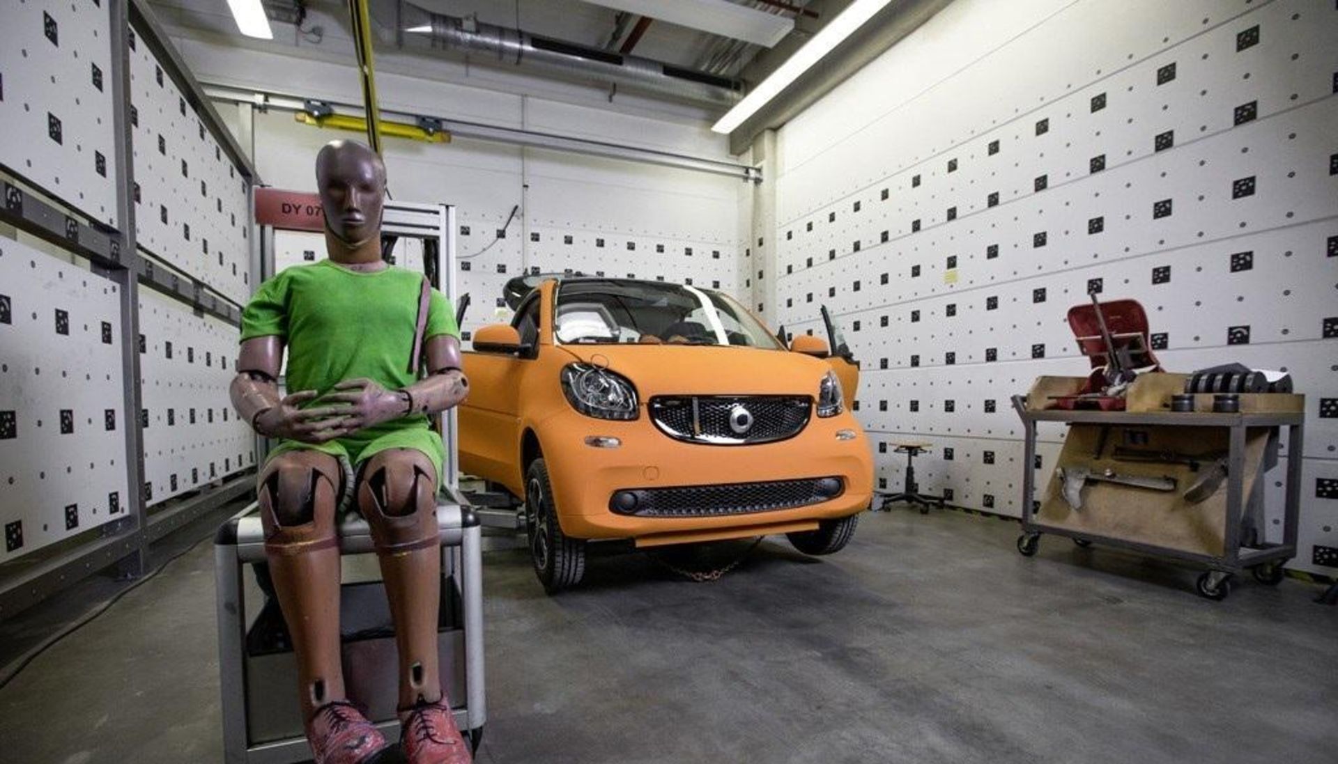 برای نمایش ایمنی اسمارت جدید که اخیراً معرفی شده است، دو خودرو در تصادفی از روبرو با سرعت 50 کیلومتر بر ساعت و با 50 درصد همپوشانی با یکدیگر برخورد می‌کنند. نتایج این برخورد نشان می‌دهد که فضای قسمت سرنشینان اسمارت سالم مانده و شانس بسیار خوبی برای زنده ماندن سرنشینان آن وجود دارد.