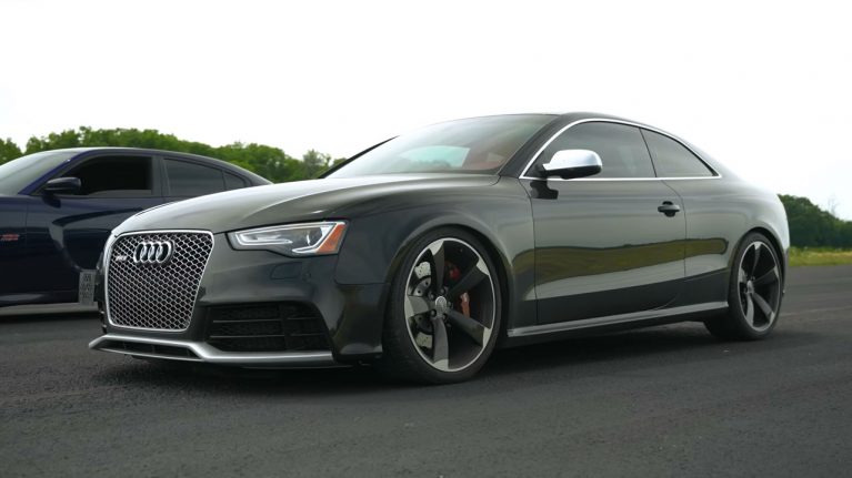 آئودی RS5 نیز هرچند در نسل کنونی از پیشرانهٔ 2.9 لیتری V6 توئین توربو استفاده میکند اما زیر کاپوت نسل قبلی آن یک موتور 4.2 لیتری V8 تنفس طبیعی قرار میگرفت که 450 اسب بخار قدرت و 430 نیوتن متر گشتاور داشت. برخلاف مرسدس، نیروی این موتور از طریق یک گیربکس هفت سرعتهٔ دوکلاچه به هر چهارچرخ منتقل میشود. حال در دوران پیشرانههای توربو و هیبریدی، Sam CarLegion این دو آلمانی V8 تنفس طبیعی جذاب را برای برگزاری مسابقات درگ گرد هم جمع کرده است.