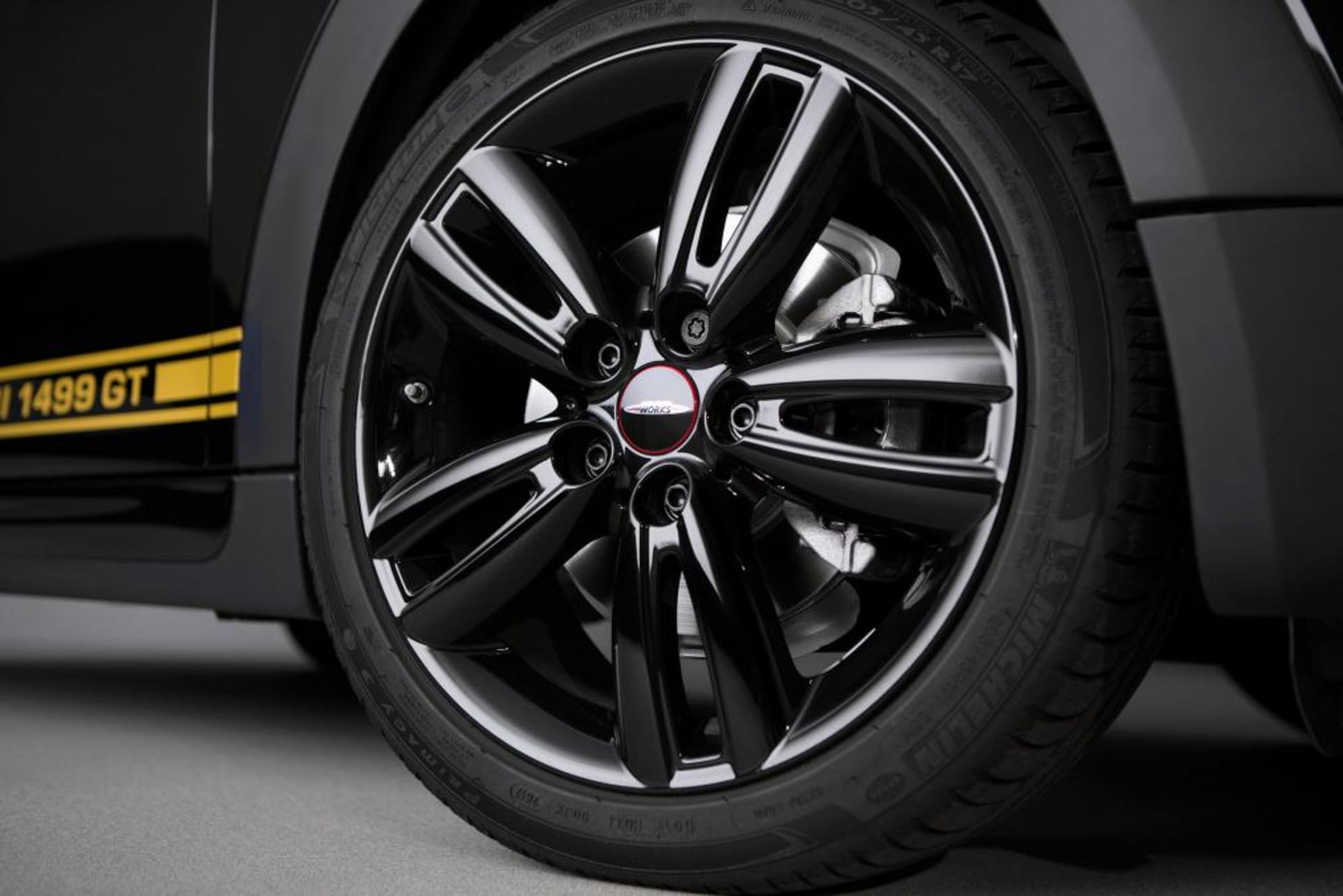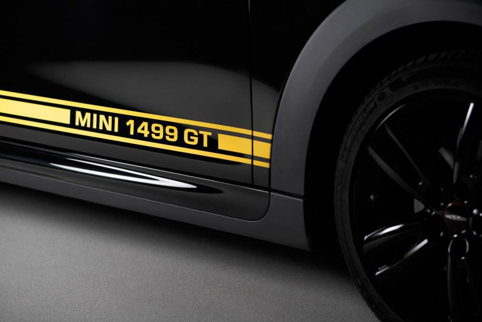 مینی 1499 GT تنها در دو رنگ سفید و مشکی در دسترس است. لبههای پایینی بخشهای کناری این خودرو با فونت 1499 GT منقش شده که این خود اشارهای است به مدل 1275 GT کلاسیک. این فونت بسته به رنگ بدنه خودرو، به رنگ مشکی یا طلایی است. این خودرو همچنین به پکیج اسپرتی JOHN COOPER WORKS مجهز است. در کابین، صندلیهای اسپرتی، فرمان و پلیت داخلی دربها نیز با همین پکیج عرضه میشوند. مینی 1499 GT بهطور استاندارد با رینگهای آلومینیمی 17 اینچی به رنگ مشکی عرضه میشود.
