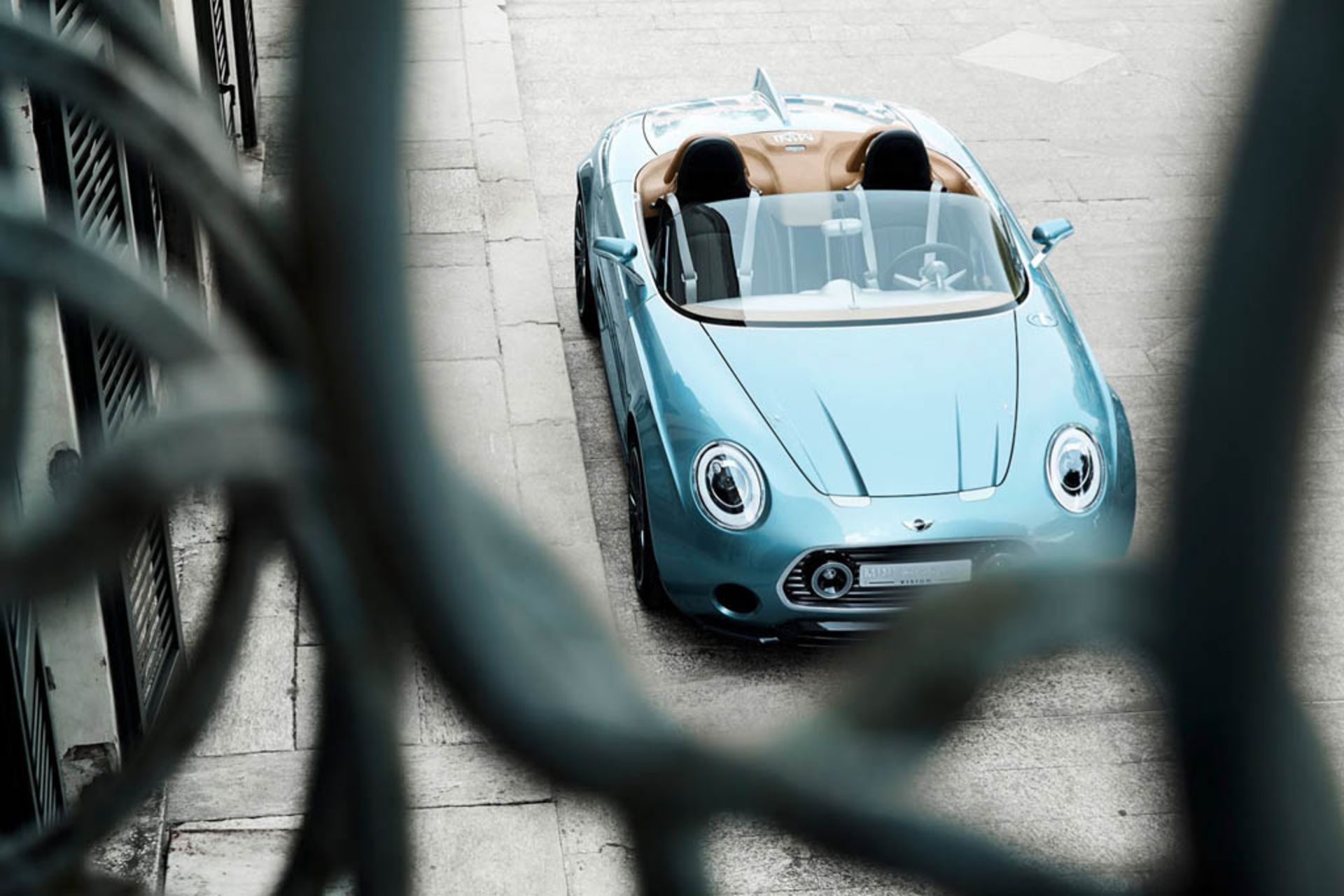 در حالی که ویژگیهای جلوی خودرو، چهره آشنای خودروهای مینی را یادآوری میکند، بقیه خودرو از آلومینیم طراحی شده که در هیچ مینی دیگری دیده نشده است. یک کاپوت طویل، صندلیهای عقب رفته، پرداخت عالی سطوح و دم بالهای شبیه جگوار مدل D از ویژگیهای دیگر این خودرو است و البته مدل Union Jack چراغهای عقب به آن جلوه دیگری داده است.
