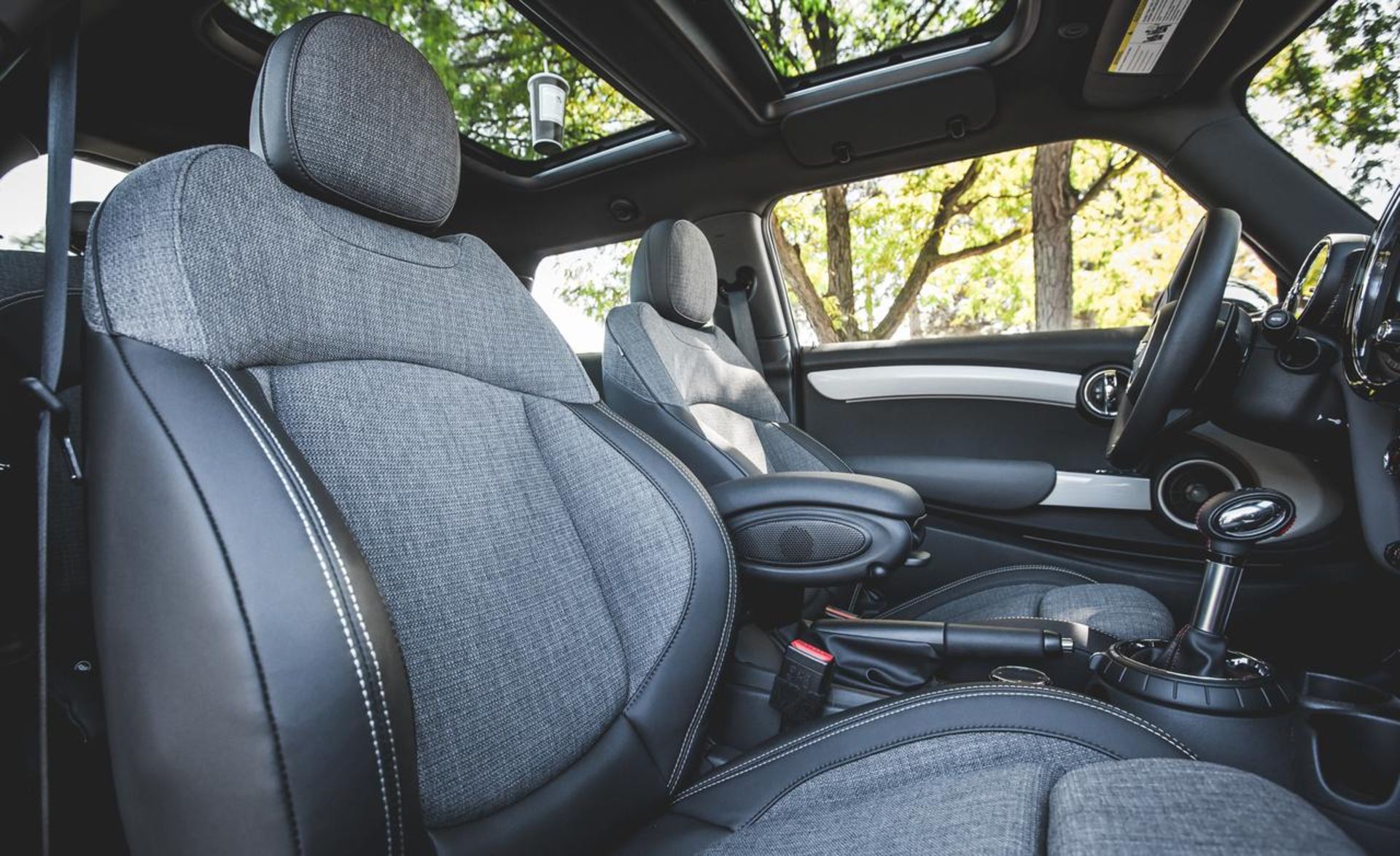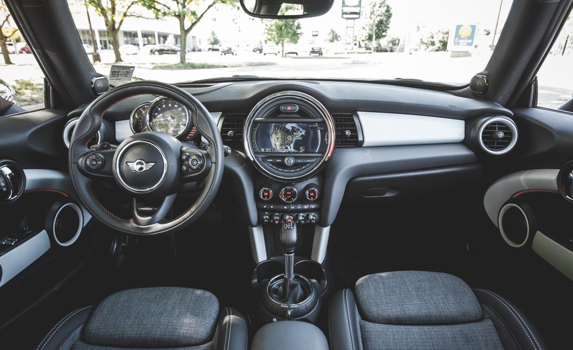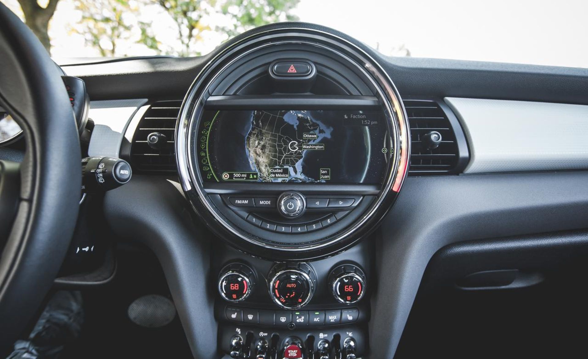 در همین حال، سیستم اتوماتیک با یک سری تجهیزاتی همراه شده است که ممکن است کمتر از آنها استفاده کنید؛ سیستم اتوماتیک استاپ‌-استارت موتور و انتخاب‌کننده حالت رانندگی. برای انتخاب حالت، حلفه دور دسته دنده را در خلاف جهت عقربه‌های ساعت بچرخانید تا در وضعیت Green mode قرار بگیرد. در این حالت، یک رنگ سبز ملایم پیرامون ابزارهای مرکزی را در بر می‌گیرد و پیغام “Let’s MINImalize!” بر روی صفحه نقش می‌بندد. در همین حال، می‌توانید حلقه را در جهت دیگر بچرخانید تا حالت Sport انتخاب شده و حال و هوای پیرامون ابزارها به رنگ قرمز دربیاید. در این حالت با پیغام “Let’s Motor Hard!” بر روی نمایشگر روبرو خواهید بود.
