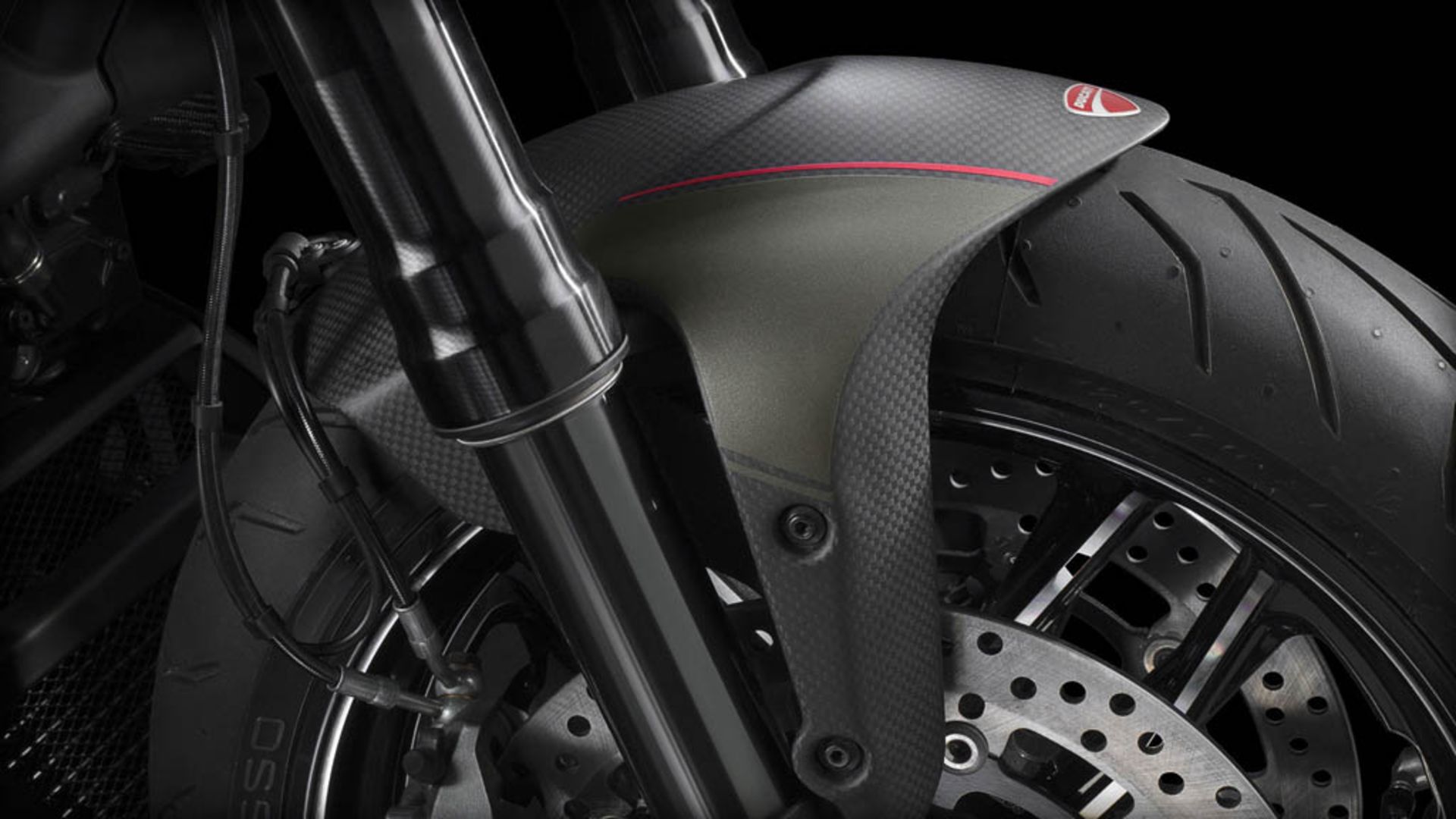 به این ظاهر کربن، میتوانیم باکی از جنس فیبر کربن و قاب چرخهای مات و همچنین رنگ تیرهای که بهصورت ماهرانهای مثل سایه بر روی تمام اجزای موتورسیکلت پراکنده شده است را اضافه کنیم تا شاهد خیرهکنندگی هرچه بیشتر Diavel Carbon 2016 باشیم.