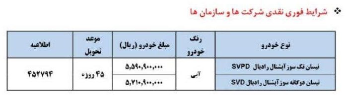 وانت نیسان دوگانه سوز | آپشنال رادیال SVPDH | --- | 725,000,000 |