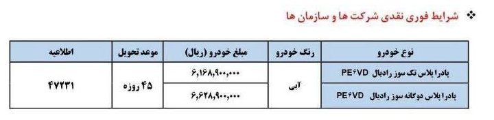 شرایط فروش پادرا پلاس دوکابین - آبان 1403