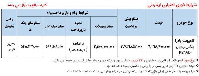 - فروش اعتباری پادرا پلاس - اسفند 1402