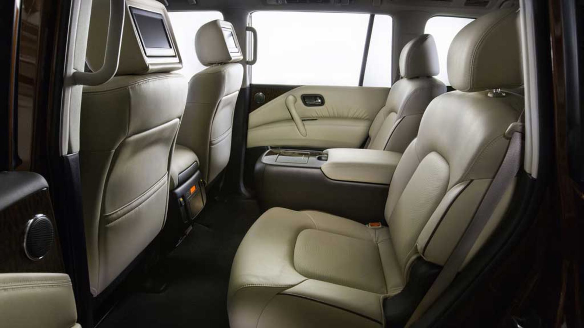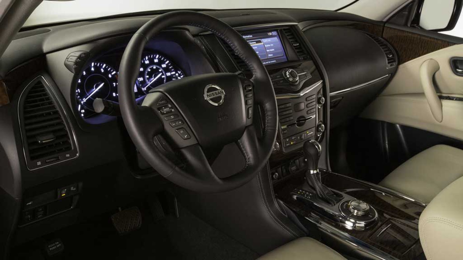 همانند بیرون خودرو، در داخل آن نیز شاهد بهبودهایی هستیم. کابین آرمادا بزرگ، مدرن، راحت و زیبا است و مطمئناً قطعات زیادی از نیسان و اینفینیتی در آن دیده میشود که البته احساس بدی ندارند چراکه شما درواقع کابین QX80 را با پرداخت مبلغ بسیار کمتری دریافت میکنید. حتی نسخهٔ Platinum آرمادا که همان نمونهٔ مورد آزمایش ما است با تجهیزاتی چون صندلیهای چرمی با گرمکن و سردکن، سیستم ناوبری، سامانهٔ اطلاعاتی-سرگرمی و... تنها حدود 65 هزار دلار قیمت دارد که مشابه قیمت نسخهٔ پایهٔ اینفینیتی QX80 است.