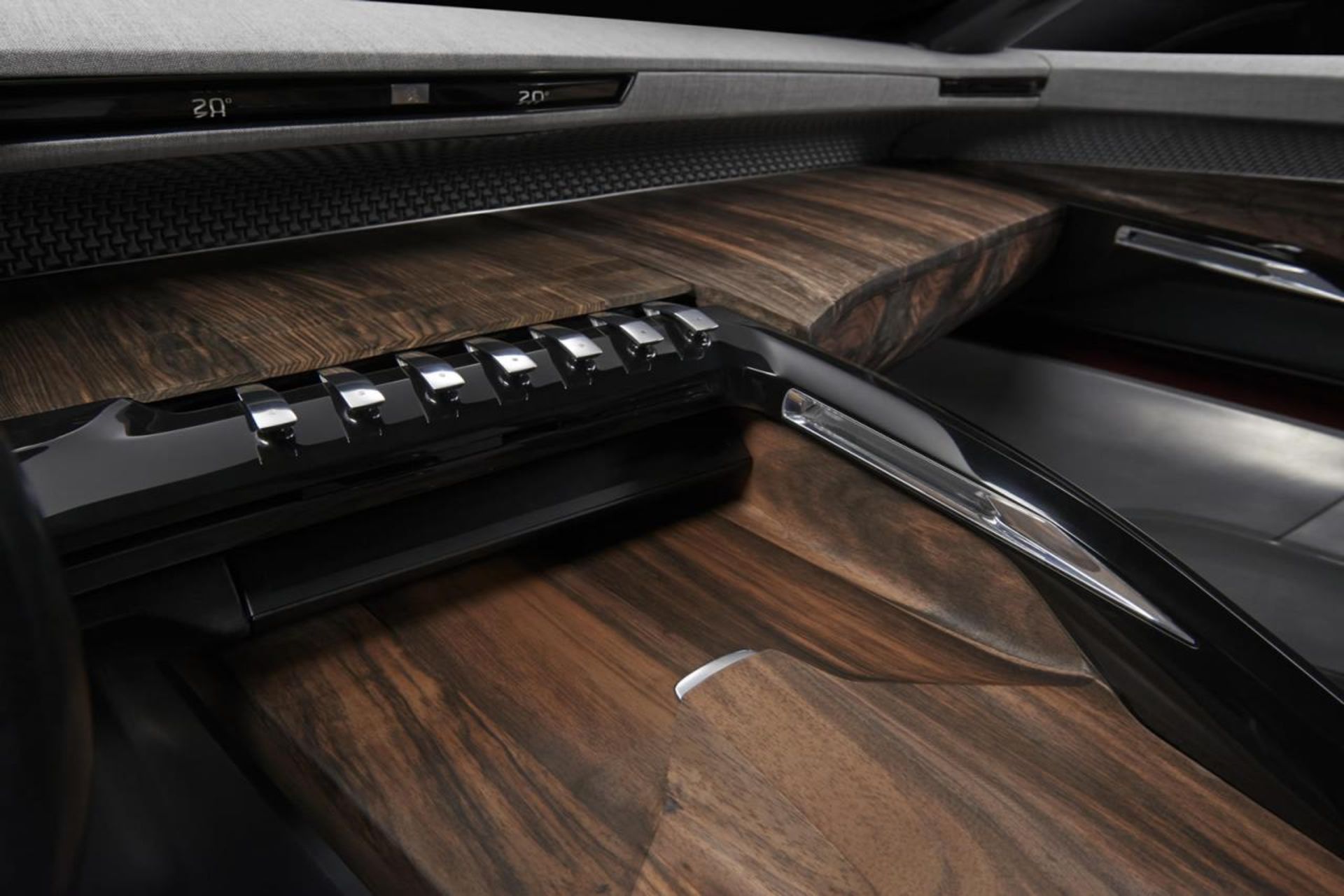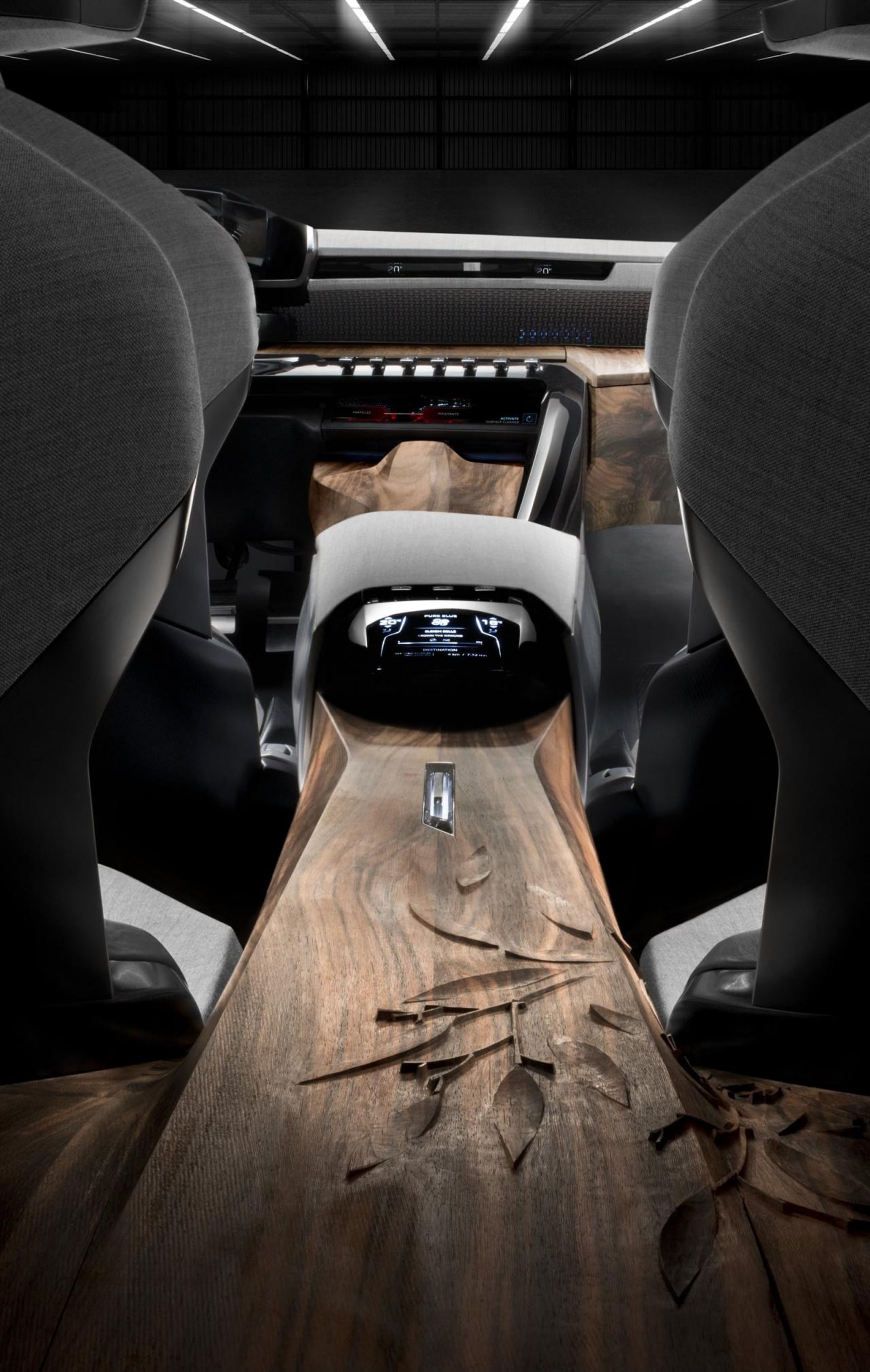 اگر به کابین خودرو دقت کنیم، علاوه بر روکش های فولادی سخت کاری شده، تریم چوبی گسترده ای را خواهیم دید که توسط استودیوی PINWU Design در چین طراحی و ساخته شده است. همچنین می توان دید که پژو در کابین Exsalt از تکنولوژی جدید i-Cockpit بهره گرفته که برای اولین بار در مدلهای 308 بکار رفت؛ دو مشخصه خاص این تکنولوژی را می توان فرمان کوچک خودرو و کنسولی ساده و خلوت (بدلیل انتقال دکمه های متععد کنسول به درون سیستم چندرسانه ای) دانست.