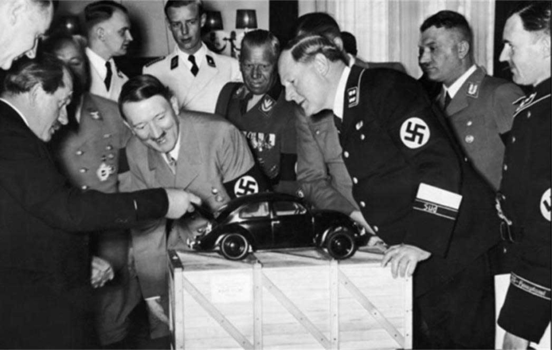 چند سال بعد آدولف هیتلر از مهندسین حوزهٔ خودرو درخواست طراحی و ساخت خودرویی کوچک و ارزان بانام «خودروی مردم» را نمود که برای اکثریت مردم آلمان قابل خریداری باشد. فردیناند پورشه هم که این درخواست را بهترین فرصت برای رسیدن به هدف خود که همان ساخت خودروهای کوچک بود میدانست، در سال 1936 و با همکاری پسرش فری پورشه طراحی و ساخت نمونهٔ اولیهٔ خودروی موردنظر هیتلر را بانام KDF Wagen (که بعدها به فولکسواگن بیتل تغییر نام داد) آغاز کرد. وی در طول جنگ جهانی دوم وسایل نقلیهٔ نظامی همچون تانک قدرتمند تایگر را نیز طراحی نمود.