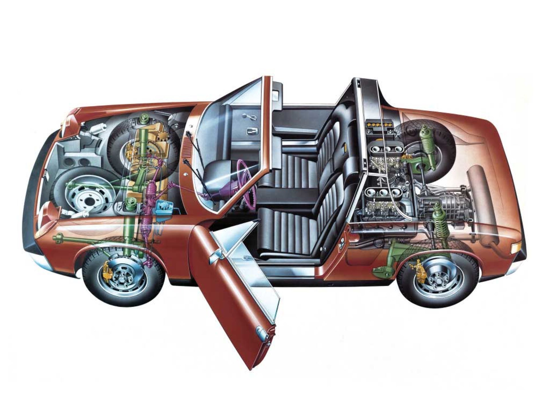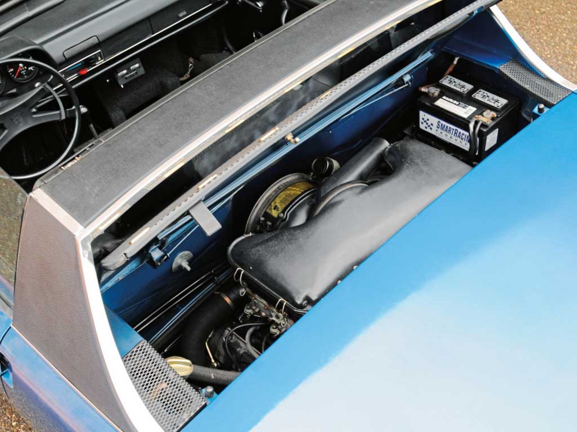914 یک ماشین کامپکت سبکوزن با طرح موتور وسط بود و تنها حدود 900 کیلوگرم وزن داشت. نیروی موردنیاز آن از طریق یک پیشرانهٔ تخت تأمین شده و توسط یک گیربکس پنج سرعتهٔ دستی به چرخهای عقب انتقال پیدا میکرد. این ماشین مجهز به سیستم تعلیق مستقل بود و سقف تارگای آنهم بسیار جذاب به نظر میرسید.