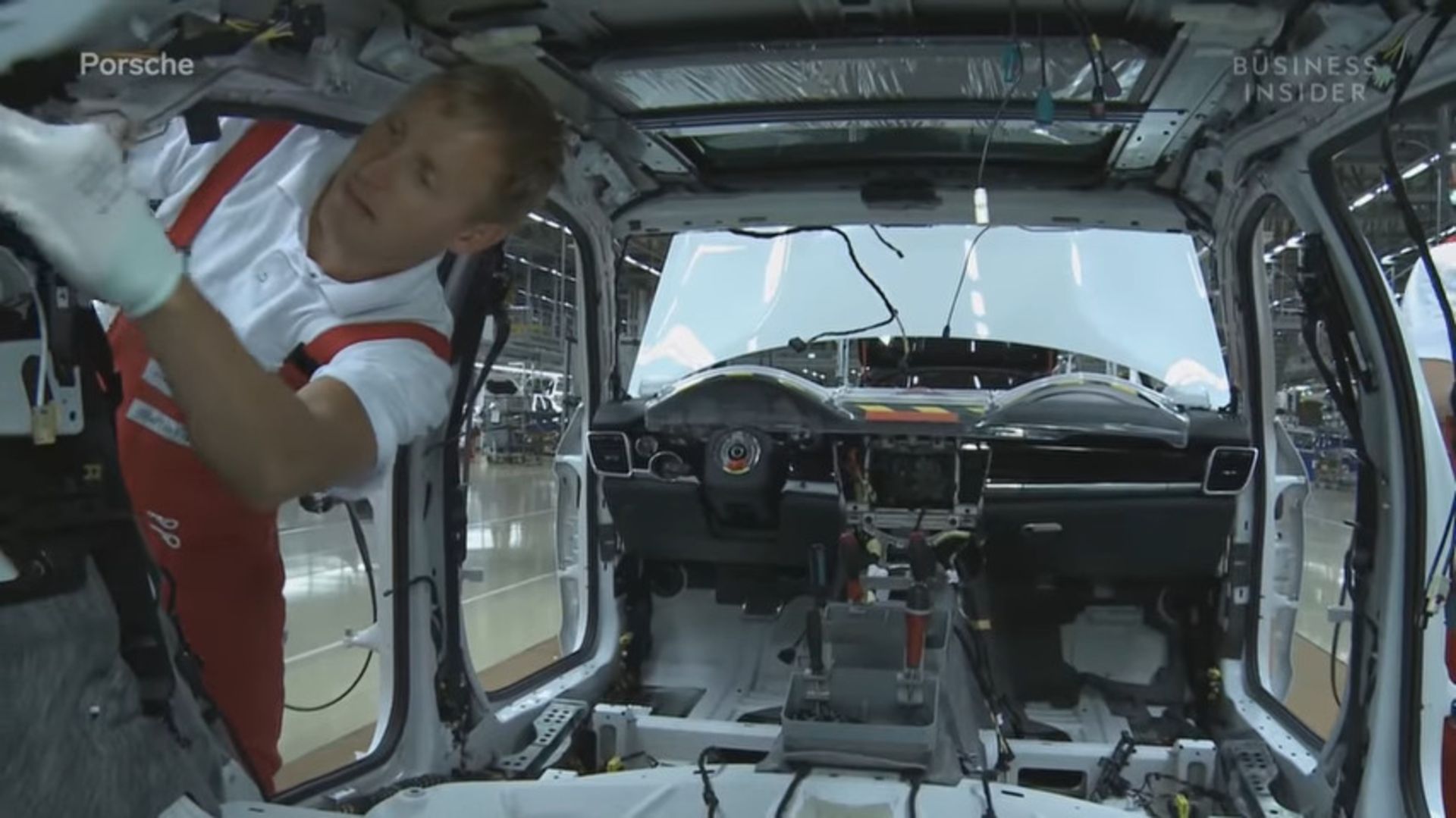 در ویدئو گفته می‌شود که خط مونتاژ جایی است که بدنه‌های لخت پانامرا و ماکان به خودروهای پرفورمنس و لوکسی تبدیل می‌شوند. اینجاست که کارکنان خوش‌شانس پورشه شروع به نصب قطعات کابین می‌کنند که بسته به مشخصات خودرو شاید شامل 200 قطعه جداگانه هم بشود. پس از این بخش نیز بخش‌های دیگر همچون سیستم تعلیق، ترمزها، لوله‌های سوخت و... نصب می‌شوند.