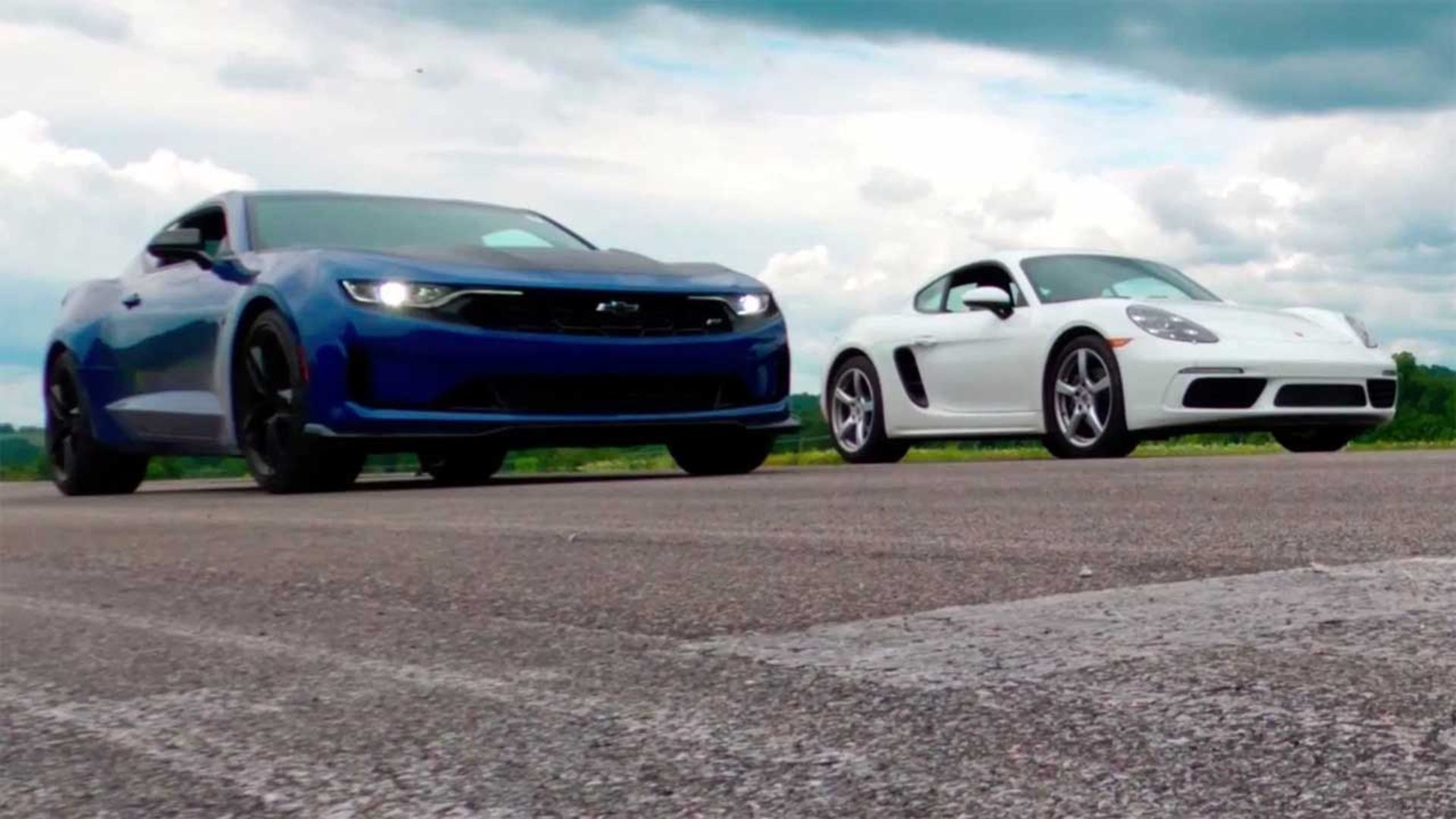 نه شورلت کامارو چهار سیلندر و نه پورشه کیمن 2 لیتری نسخههای بالا رده در خانوادهٔ خود نیستند اما بااینحال هردوی آنها هنوز هم پرفورمنس قابلقبولی را ارائه میکنند. حال در این ویدئو این دو اسپرت آلمانی و آمریکایی بهطور کامل باهم مقایسه شدهاند. کاماروی حاضر در این ویدئو از نوع چهار سیلندر 1LE با پیشرانهٔ 2 لیتری توربو است که 275 اسب بخار قدرت و 400 نیوتن متر گشتاور دارد. پکیج 1LE هم در این ماشین شامل تنظیم سفتتر کمکفنرها و اضافه شدن حالتهای پیست و رقابت به تنظیمات رانندگی میشود.