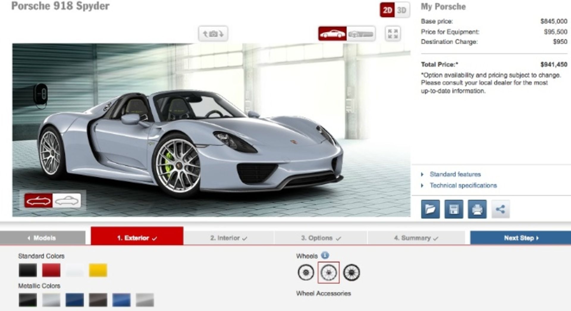 پس از رونمایی رسمی 918 اسپایدر در نمایشگاه فرانکفورت، پورشه صفحه اختصاصی 918 را برای سفارش راه اندازی کرد تا خریدارن راحت‌تر سوپر اسپرت قیمتی خود را انتخاب کنند.