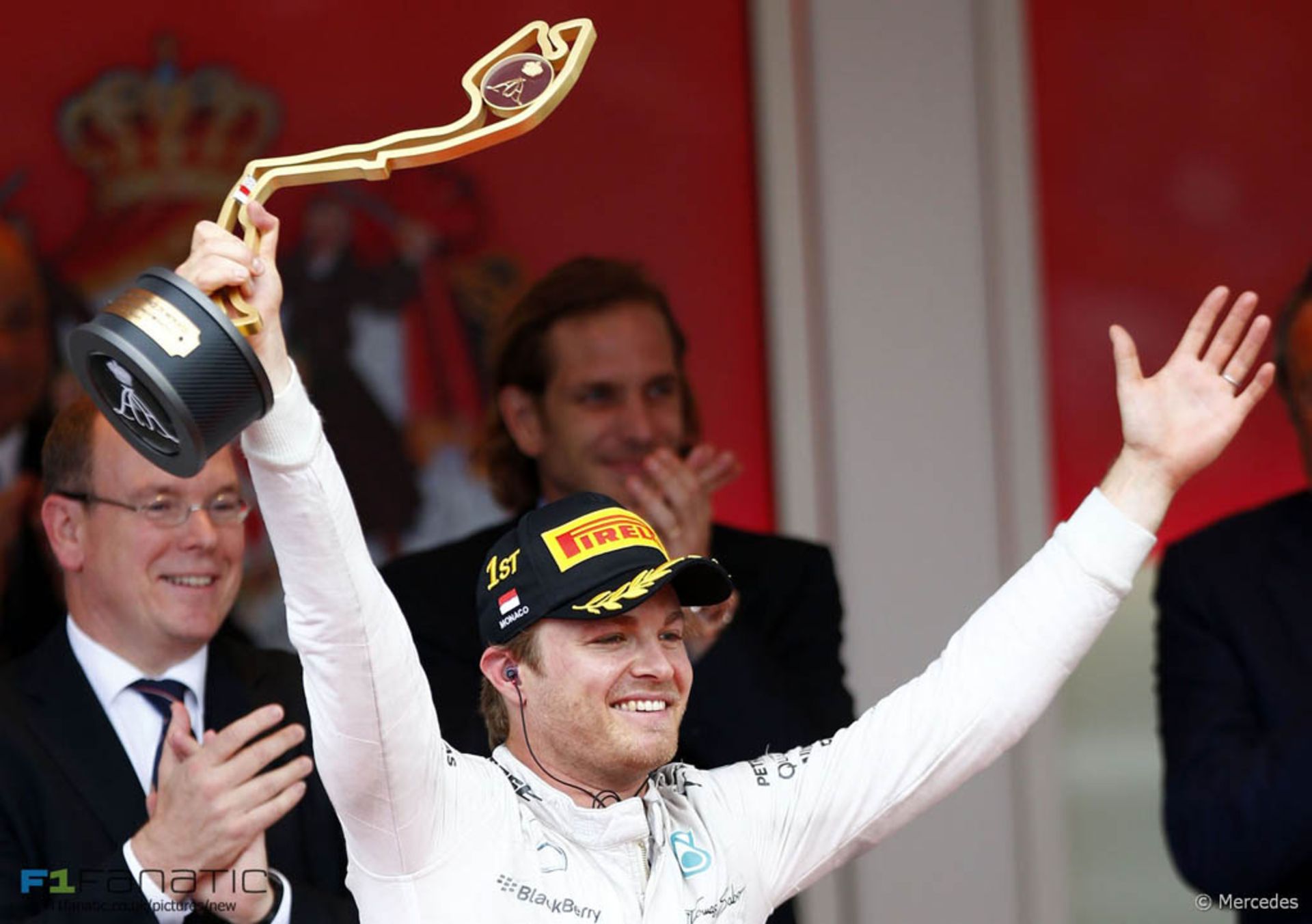 نیکو رزبرگ، راننده شماره دوی تیم مرسدس، برای سومین سال متوالی در پیست موناکو، قهرمانی را از آن خود کرد. با این حال این پیروزی را بیشتر مدیون یک خطای استراتژی تیمی باید دانست که باعث شد در اواخر مسابقه، رتبه لوئیس همیلتون از اول به سوم تنزل یابد.