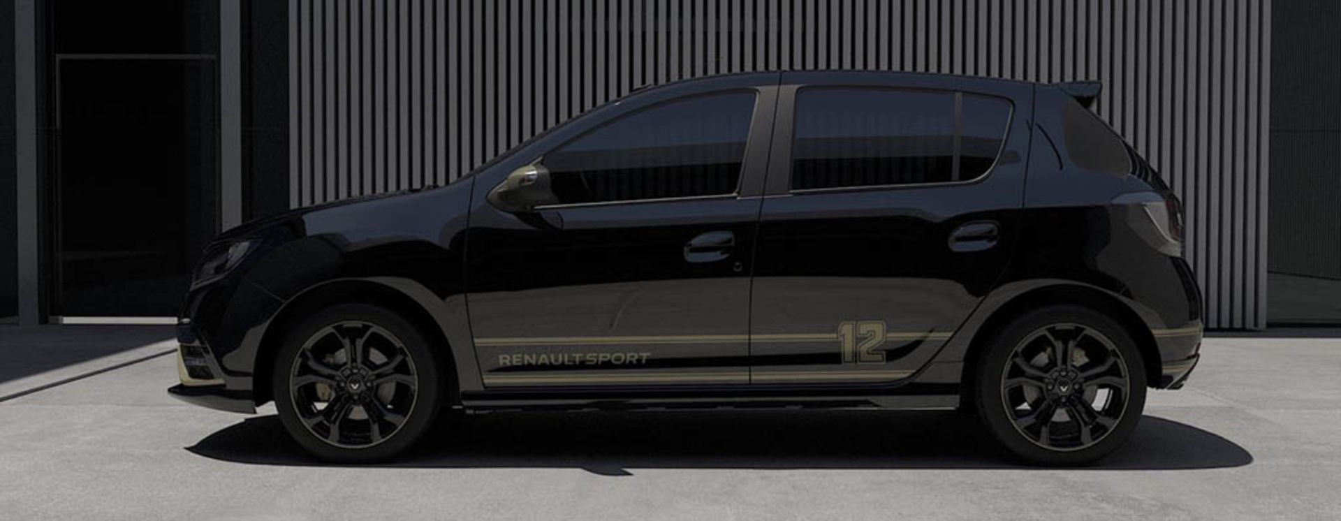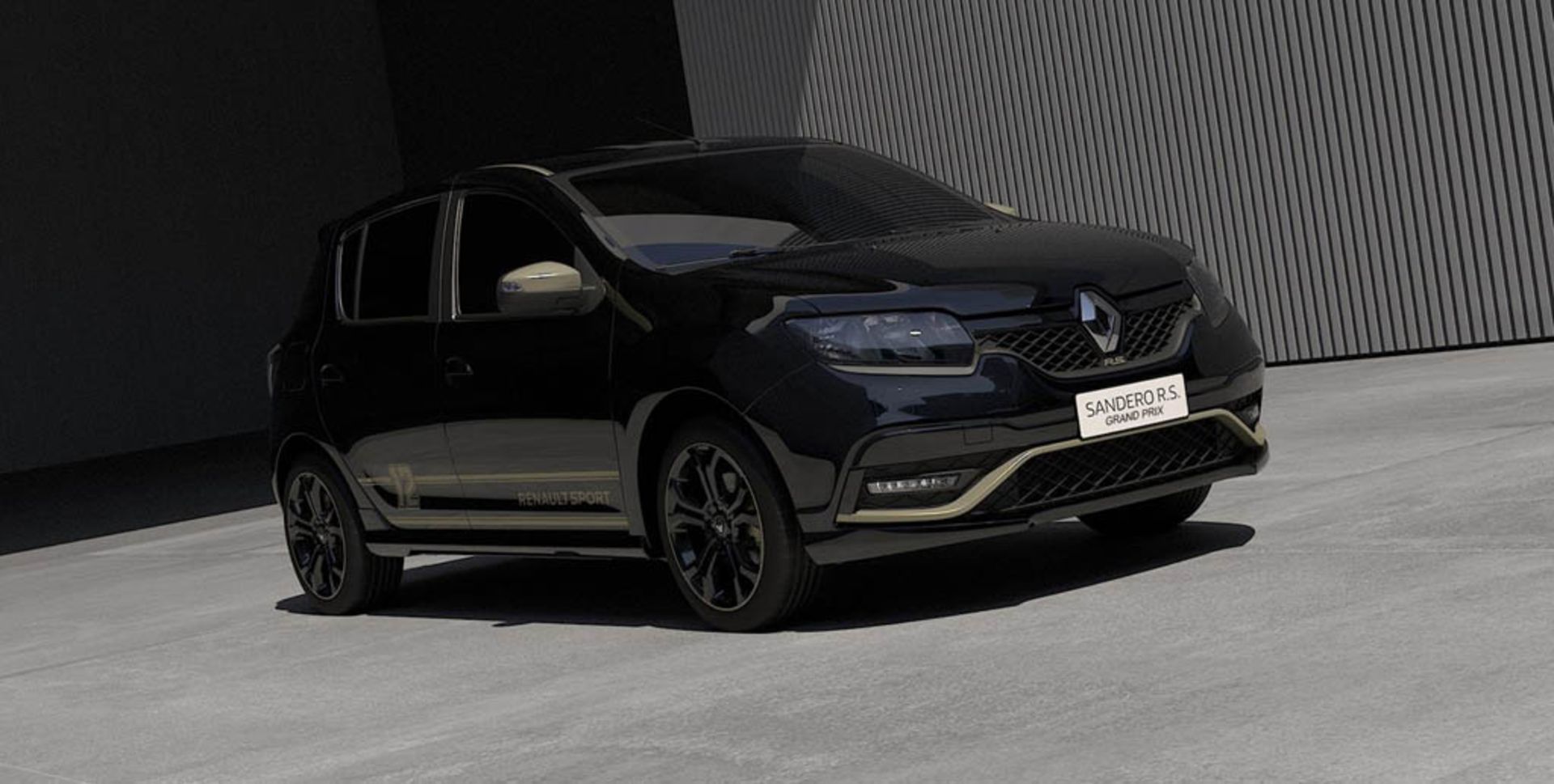اولین خودرو نام ساندرو RS گرندی پری را به خود گرفته و نسخهای حادتر از این هاچبک در برزیل به شمار میرود. البته این خودرو از همان پیشرانهی 2 لیتری 148 اسب بخاری بنزینی سود میبرد اما در آن شاهد ظاهر گیراتر و تِم کلی خودروی فرمول 1 رنو هستیم. الگویی مشابه در داخل کابین نیز بکار رفته و شاهد تریم مشکی و طلایی در هر سطحی هستیم.